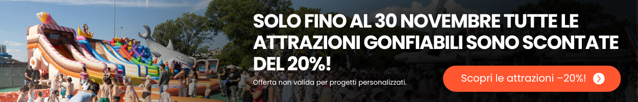 Un parco acquatico gonfiabile è l'occasione per aumentare la clientela. Offrendo loro questo tipo di attrazione, potete essere certi che si divertiranno a trascorrere del tempo con tutta la famiglia in questo luogo. E trarranno sicuramente beneficio dall'intrattenimento che offrirete. Dopo tutto, è molto divertente! Saremo lieti di aiutarvi a scegliere un parco acquatico gonfiabile che soddisfi le vostre aspettative.
