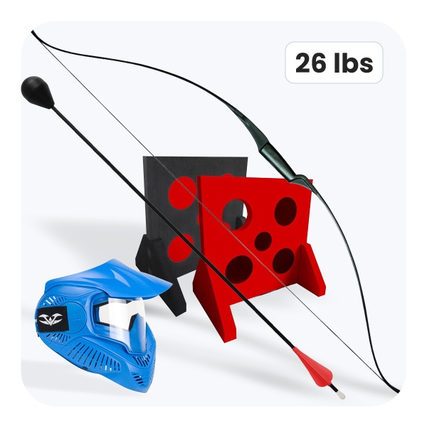 Gli archi da 26 lbs garantiscono emozioni intense e maggiore precisione, apprezzati dai giocatori esperti. Le frecce veloci, leggere e aerodinamiche, riducono il rischio di infortuni, garantendo un divertimento sicuro anche con alta rotazione di partecipanti.