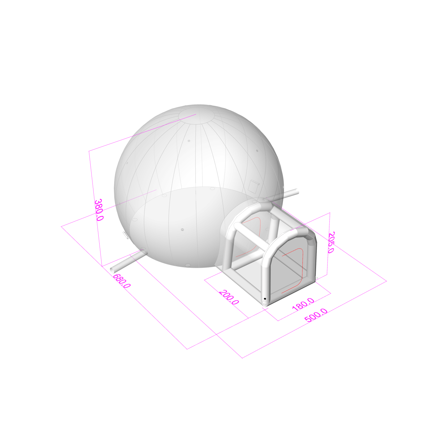 Bubble House 6,8x5 m è una cupola gonfiabile e trasparente progettata per noleggiatori professionali di attrazioni, agenzie di eventi e il settore HoReCa. È perfetta come area fotografica, zona giochi o punto scenografico durante campagne, fiere e feste familiari. La forma trasparente e la possibilità di decorarla liberamente con palloncini o allestimenti a tema fanno sì che la cupola catturi immediatamente l’attenzione e organizzi il movimento nell’area dell’evento.