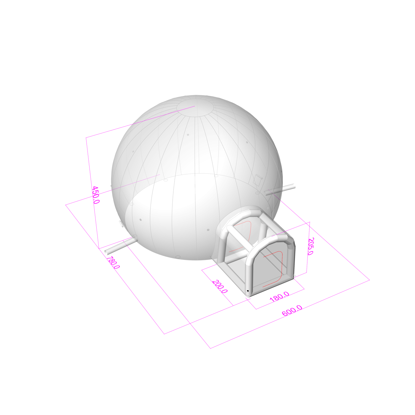 Casa delle bolle 7,8x6m è una cupola gonfiabile e trasparente progettata per noleggiatori professionali di attrazioni, agenzie di eventi e il settore HoReCa. È perfetta come area fotografica, zona giochi o punto scenografico durante campagne, fiere e feste familiari. La forma trasparente e la possibilità di decorarla liberamente con palloncini o allestimenti a tema fanno sì che la cupola catturi immediatamente l’attenzione e organizzi il movimento nell’area dell’evento.