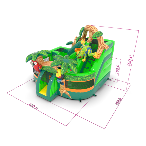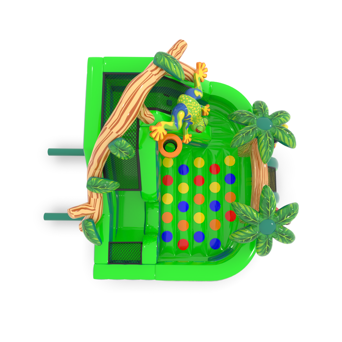 Parco giochi gonfiabile "rana" a tema giungla è dedicato principalmente ai bambini che cercano un'avventura giocando con amici e coetanei. Il parco giochi gonfiabile è recintato e morbido e quindi completamente sicuro da usare. Il Parco giochi gonfiabile "rana" a tema giungla funziona molto bene per i picnic in famiglia, le feste di team building e di lavoro o gli eventi di qualsiasi altro tipo, all'aperto e non solo. I parchi giochi gonfiabili sono un'ottima alternativa ai gonfiabili più grandi e impegnativi. Raccomandiamo in particolare questa attrazione per l'avvio di attività commerciali.