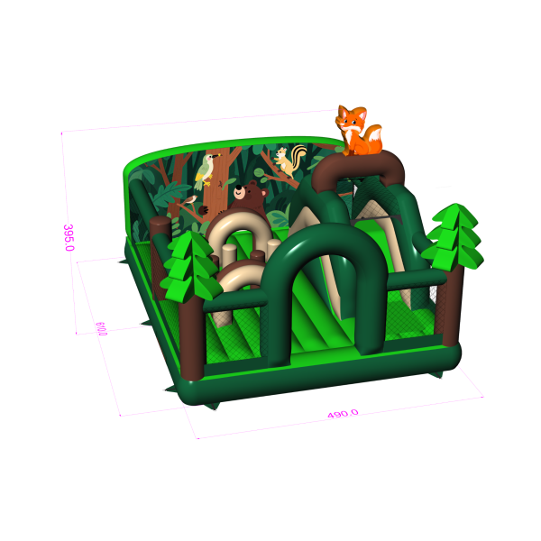 Parco giochi gonfiabile 6x5 a tema foresta è dedicato principalmente ai bambini che cercano un'avventura giocando con amici e coetanei. Il parco giochi gonfiabile è recintato e morbido e quindi completamente sicuro da usare. Il Parco giochi gonfiabile 6x5 a tema foresta funziona molto bene per i picnic in famiglia, le feste di team building e di lavoro o gli eventi di qualsiasi altro tipo, all'aperto e non solo. I parchi giochi gonfiabili sono un'ottima alternativa ai gonfiabili più grandi e impegnativi. Raccomandiamo in particolare questa attrazione per l'avvio di attività commerciali.