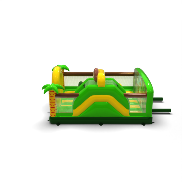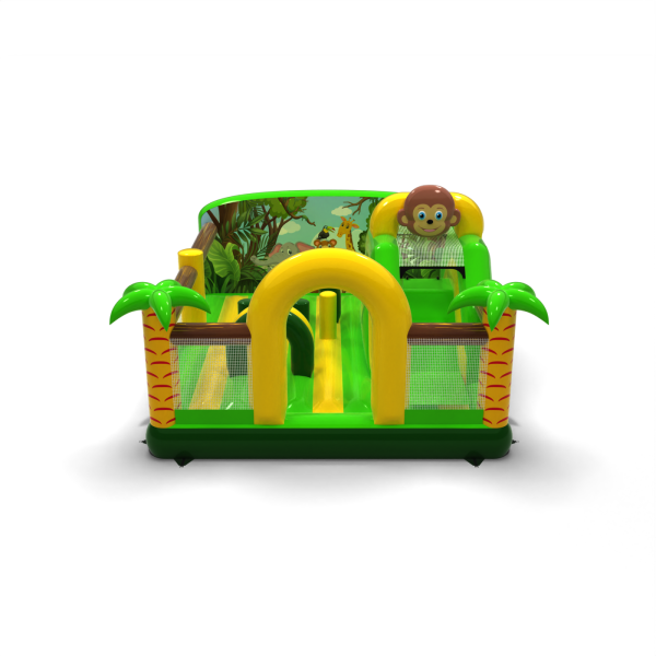 Il parco giochi gonfiabile 6x5 a tema giungla è l'attrazione ideale per parchi a tema, aree esterne ed eventi per famiglie. La combinazione di colori verde e giallo, la palma e la scimmia sorridente creano un'ambientazione coesa che cattura immediatamente l'attenzione dei bambini. Il design combina un percorso a ostacoli, uno scivolo e uno spazio gonfiabile per un gioco dinamico in un ambiente sicuro. Le reti trasparenti permettono di tenere d'occhio il gruppo e la forma compatta consente una gestione efficiente anche in caso di traffico intenso. Scegliete un tema che trasformi qualsiasi evento in una vera avventura in mezzo alla natura.