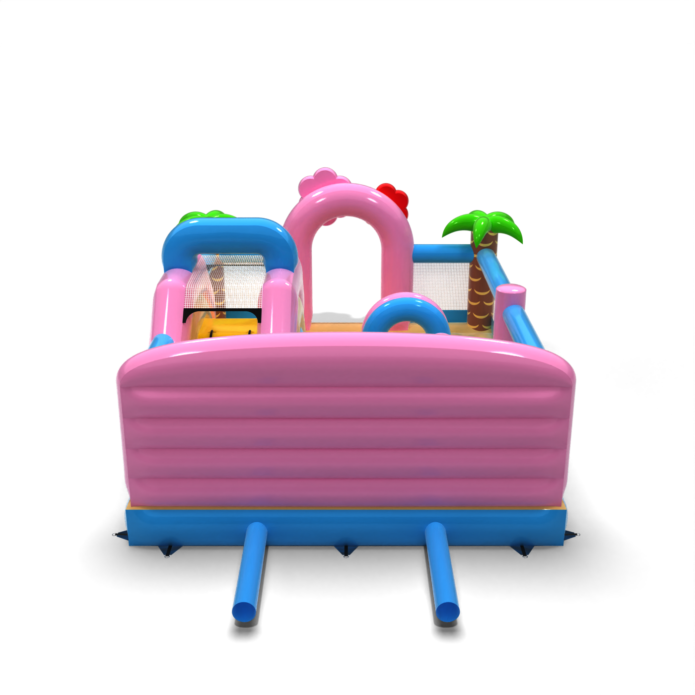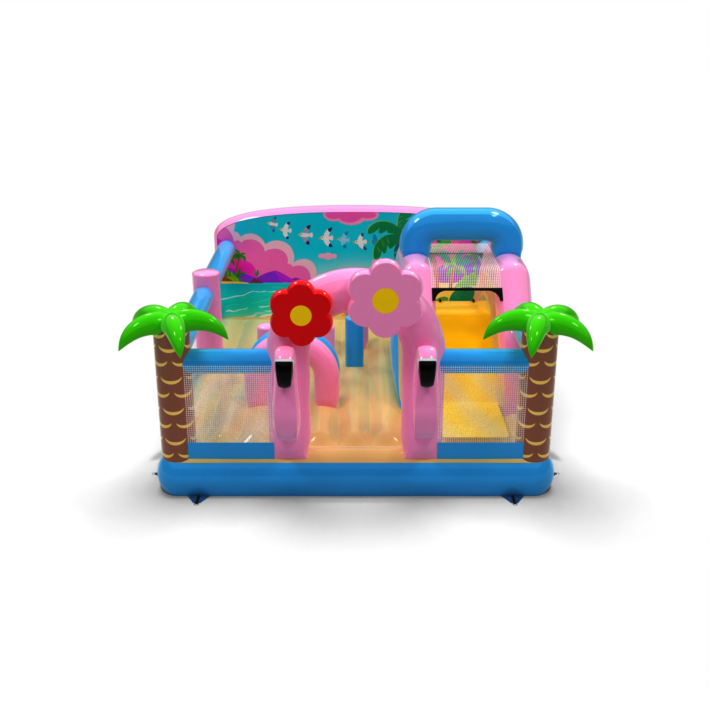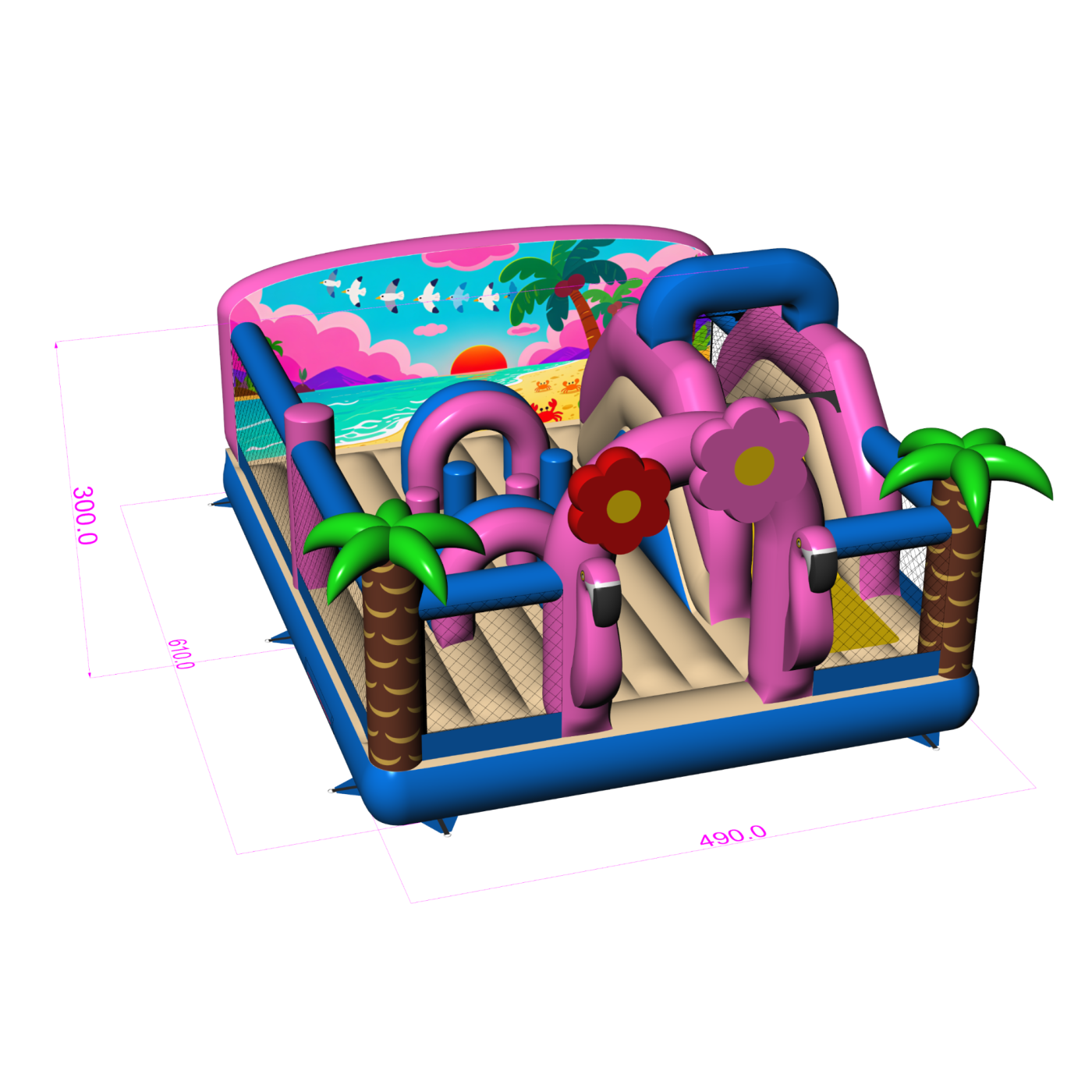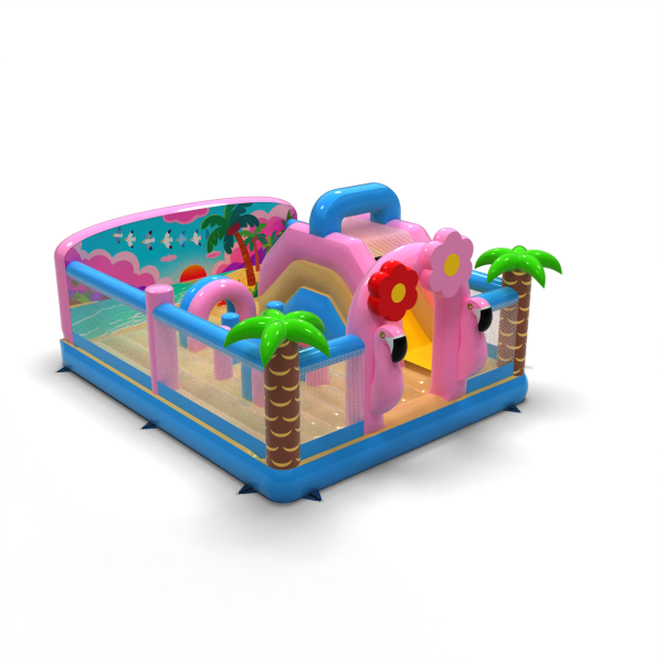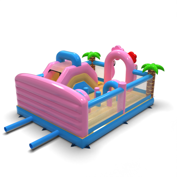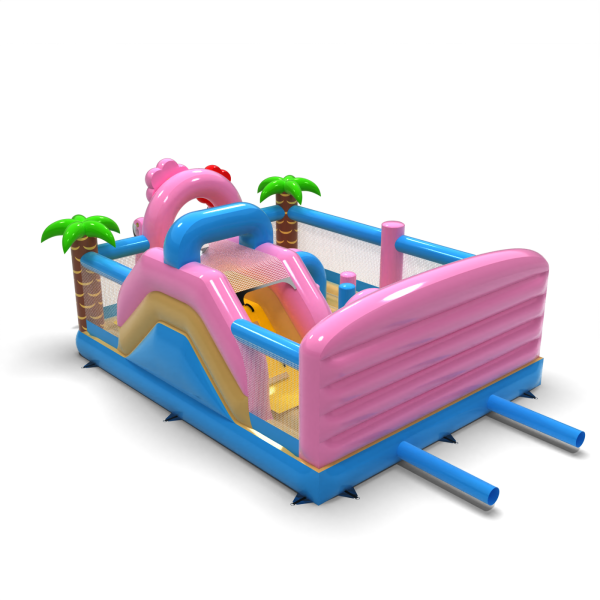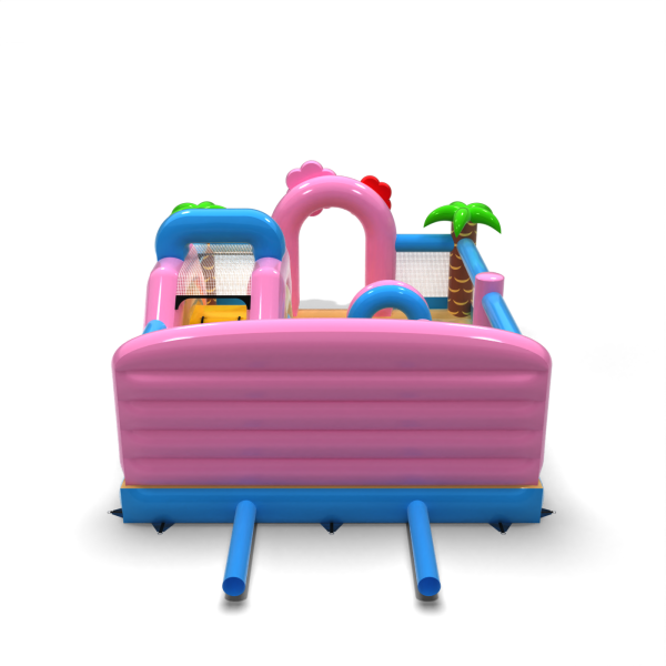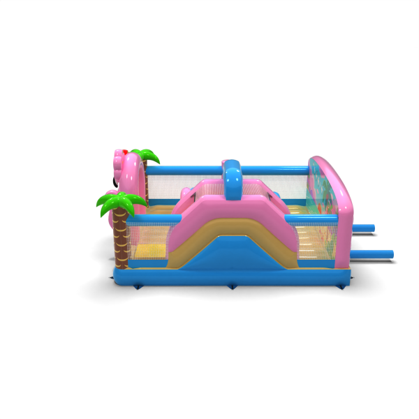 Il parco giochi gonfiabile 6x5 a tema hawaiano è destinato alle società di noleggio e agli organizzatori di eventi che vogliono attirare l'attenzione con un'attrazione colorata ed esotica. Fenicotteri rosa, palme e scenari vacanzieri creano un'atmosfera di avventura tropicale che contraddistingue l'area per bambini e incoraggia il gioco. Il design combina elementi di gioco classici - tunnel, scivolo e ostacoli - con uno spazio sicuro e arioso. Grazie alle sue dimensioni compatte e all'ampia area di gioco, l'attrazione è ideale per le aree con un elevato turnover di partecipanti. Arricchite la vostra offerta con un tema che accende l'immaginazione e attrae i piccoli come una calamita.
