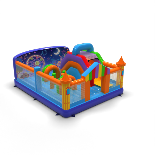 Parco giochi gonfiabile 6x5 a tema parco divertimenti è dedicato principalmente ai bambini che cercano un'avventura giocando con amici e coetanei. Il parco giochi gonfiabile è recintato e morbido e quindi completamente sicuro da usare. Il Parco giochi gonfiabile 6x5 a tema parco divertimenti funziona molto bene per i picnic in famiglia, le feste di team building e di lavoro o gli eventi di qualsiasi altro tipo, all'aperto e non solo. I parchi giochi gonfiabili sono un'ottima alternativa ai gonfiabili più grandi e impegnativi. Raccomandiamo in particolare questa attrazione per l'avvio di attività commerciali.