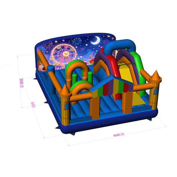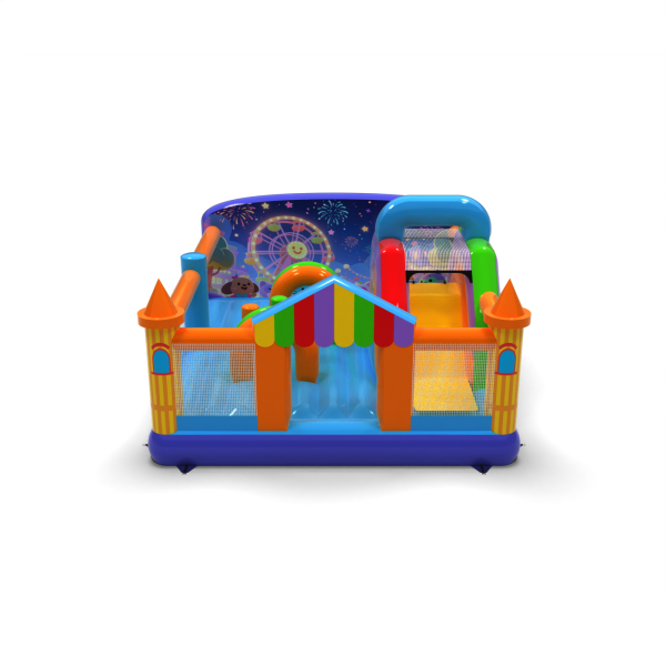 Un'attrazione colorata creata per eventi familiari, festival e zone di intrattenimento in cui conta l'effetto "wow". Il tema del luna park con giostre, luci e grafiche fiabesche crea un'atmosfera magica che incoraggia i bambini a giocare e prolunga il tempo di permanenza nell'attrazione. Il percorso a ostacoli, gli elementi di salto e lo scivolo offrono un divertimento dinamico all'interno di un'unica struttura. Grazie alla sua grande capacità e al corpo compatto, questo modello è facile da maneggiare e sfrutta in modo efficiente lo spazio. Fate in modo che la vostra zona si distingua e attiri i clienti alla ricerca del brivido!