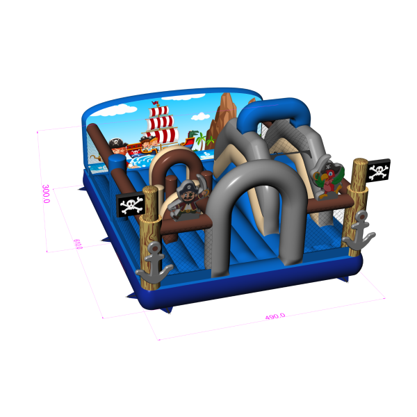 Parco giochi gonfiabile 6x5 a tema piratesco è dedicato principalmente ai bambini che cercano un'avventura giocando con amici e coetanei. Il parco giochi gonfiabile è recintato e morbido e quindi completamente sicuro da usare. Il Parco giochi gonfiabile 6x5 a tema piratesco funziona molto bene per i picnic in famiglia, le feste di team building e di lavoro o gli eventi di qualsiasi altro tipo, all'aperto e non solo. I parchi giochi gonfiabili sono un'ottima alternativa ai gonfiabili più grandi e impegnativi. Raccomandiamo in particolare questa attrazione per l'avvio di attività commerciali.