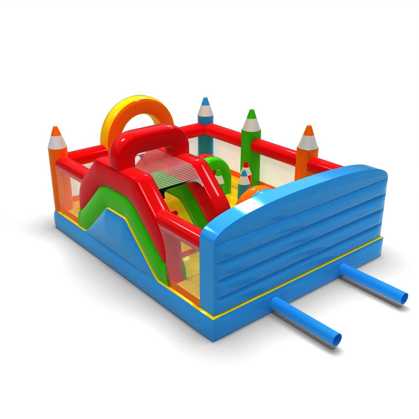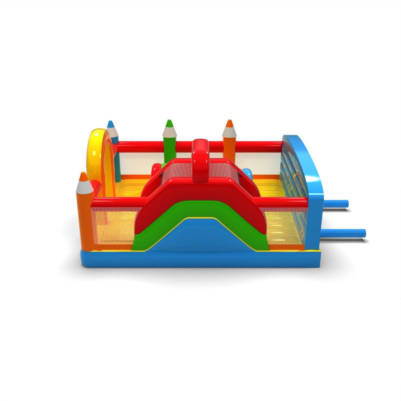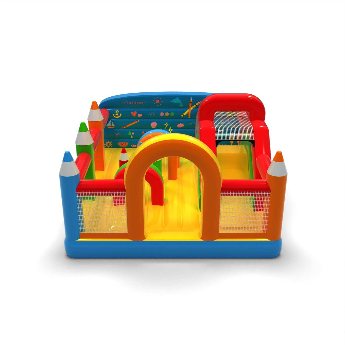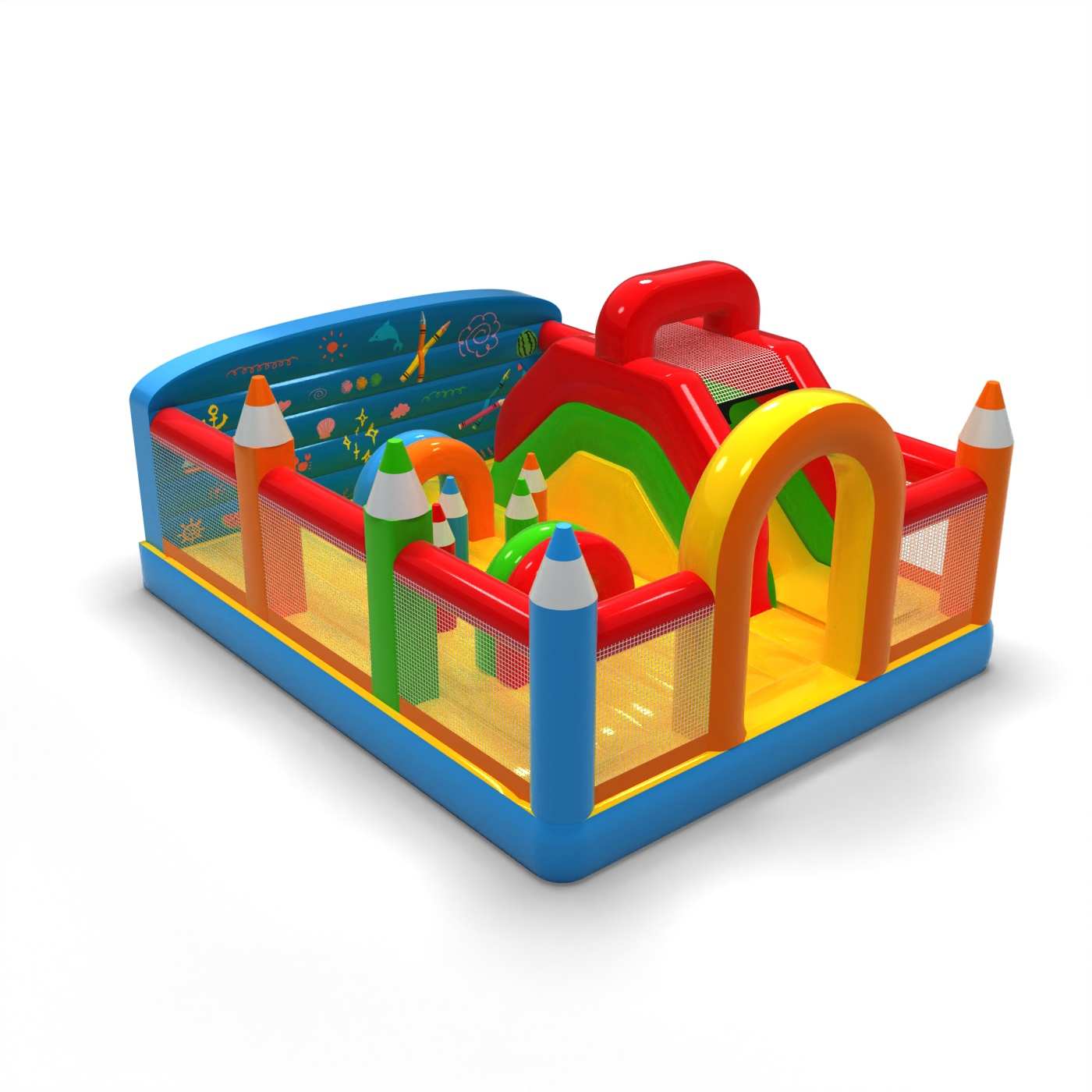 Il design a pastelli e i colori pastello creano uno spazio di gioco accogliente e creativo per i bambini. L'interno del parco giochi offre una varietà di elementi di attività che incoraggiano il movimento e la libera esplorazione. Le forme distintive ispirate ai pastelli creano una narrazione visiva coerente ed educativa. È una soluzione pratica per gli organizzatori alla ricerca di un'attrazione con un ampio appeal e un carattere pacifico. Il parco giochi è adatto a picnic per famiglie, festival e zone di animazione all'aperto.
