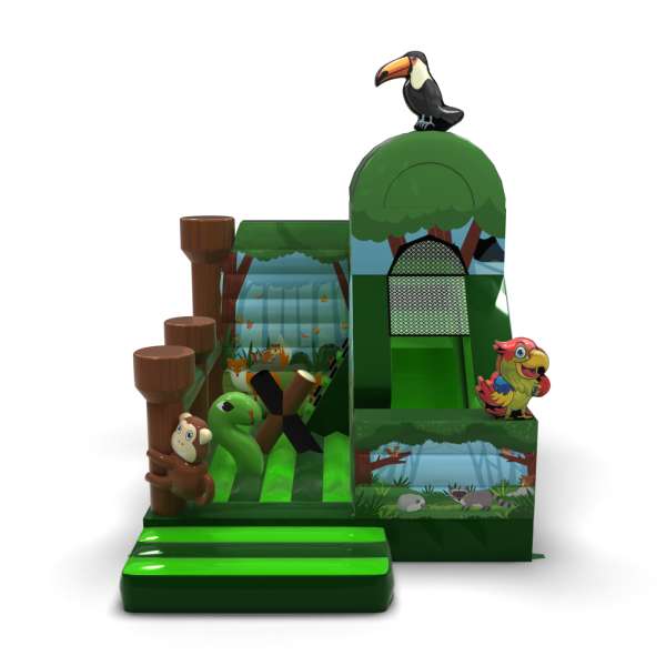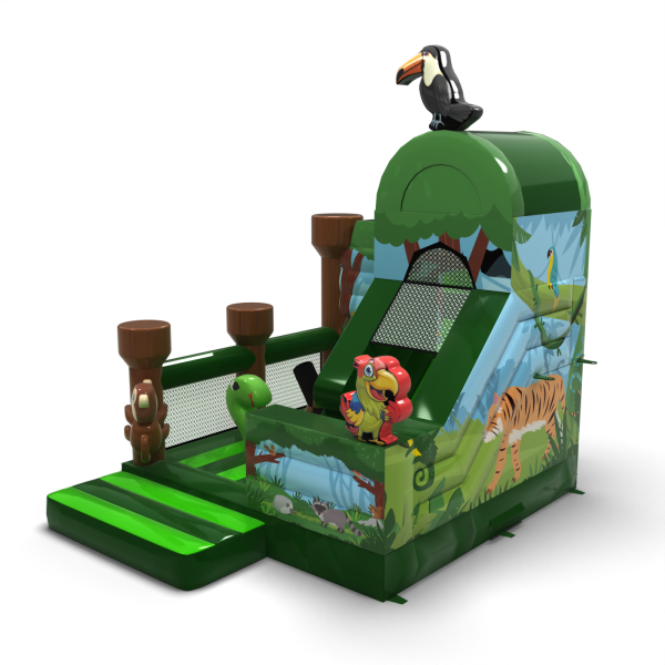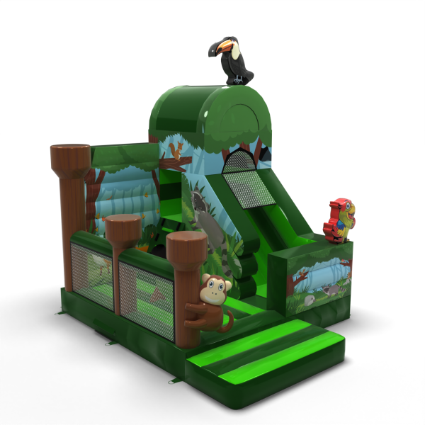 Gonfiabile con scivolo - combo giungla stampato è un'attrazione per tutti gli amanti dei rimbalzi gioiosi. I bambini si divertono un mondo, saltando e interpretando ruoli adatti al tema dell'attrazione. Il Gonfiabile con scivolo - combo giungla stampato è un'attrazione pensata non solo per i bambini più piccoli. I castelli gonfiabili di questa categoria sono solitamente decorati in modo sontuoso e contengono molti elementi che favoriscono il divertimento all'aria aperta. I castelli gonfiabili possono creare un fantastico mondo di esperienze mentre si salta gioiosamente con amici e coetanei. Il castello gonfiabile può essere combinato con altri prodotti della nostra gamma per creare un bellissimo e favoloso mondo di esperienze durante ore di allegri salti.