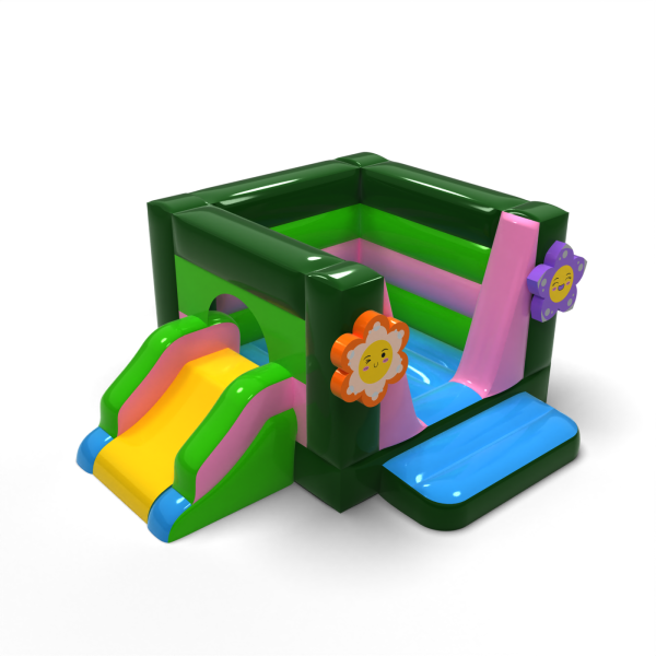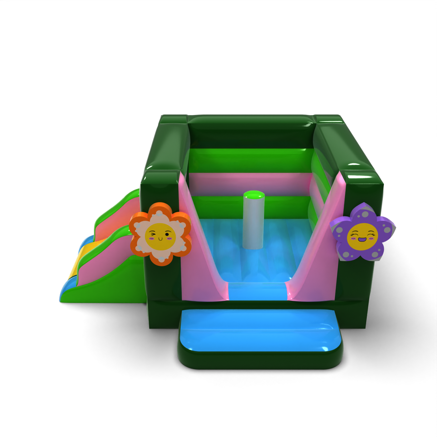 Piccolo castello gonfiabile con scivolo - in tema primaverile