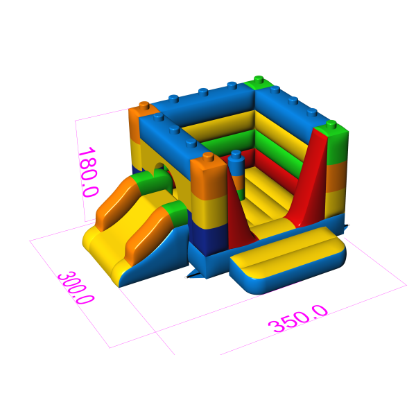 Piccolo castello gonfiabile chiuso con scivolo - in un motivo a blocchi colorati è un'attrazione per tutti gli amanti dei rimbalzi gioiosi. I bambini si divertono un mondo, saltando e interpretando ruoli adatti al tema dell'attrazione. Il Piccolo castello gonfiabile chiuso con scivolo - in un motivo a blocchi colorati è un'attrazione pensata non solo per i bambini più piccoli. I castelli gonfiabili di questa categoria sono solitamente decorati in modo sontuoso e contengono molti elementi che favoriscono il divertimento all'aria aperta. I castelli gonfiabili possono creare un fantastico mondo di esperienze mentre si salta gioiosamente con amici e coetanei. Il castello gonfiabile può essere combinato con altri prodotti della nostra gamma per creare un bellissimo e favoloso mondo di esperienze durante ore di allegri salti.