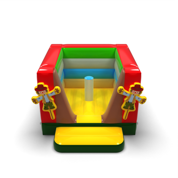 Questo gonfiabile compatto strizza l'occhio alla campagna e piacerà soprattutto ai più piccoli. Con i suoi colori vivaci, i simpatici spaventapasseri e l'area di salto sicura, l'attrazione è ideale come area giochi per bambini in hotel, ristoranti e spazi per eventi. Grazie alla sua altezza ridotta, può essere dispiegata anche all'interno.