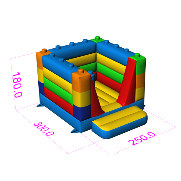 Un castello gonfiabile visivamente accattivante che assomiglia a una costruzione di grandi blocchi colorati. La forma semplice e l'altezza ridotta (180 cm) consentono di allestire l'attrazione senza problemi anche all'interno. Funzionerà bene in occasione di eventi per famiglie, ristoranti con area giochi o aree di animazione di hotel.