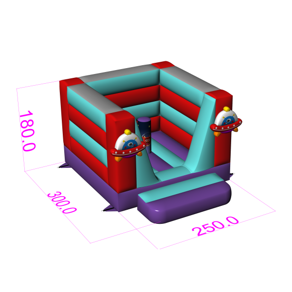 Piccolo castello gonfiabile a tema spaziale è un'attrazione per tutti gli amanti dei rimbalzi gioiosi. I bambini si divertono un mondo, saltando e interpretando ruoli adatti al tema dell'attrazione. Il Piccolo castello gonfiabile a tema spaziale è un'attrazione pensata non solo per i bambini più piccoli. I castelli gonfiabili di questa categoria sono solitamente decorati in modo sontuoso e contengono molti elementi che favoriscono il divertimento all'aria aperta. I castelli gonfiabili possono creare un fantastico mondo di esperienze mentre si salta gioiosamente con amici e coetanei. Il castello gonfiabile può essere combinato con altri prodotti della nostra gamma per creare un bellissimo e favoloso mondo di esperienze durante ore di allegri salti.