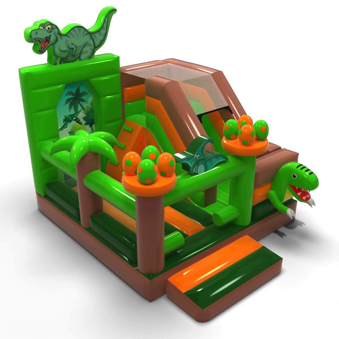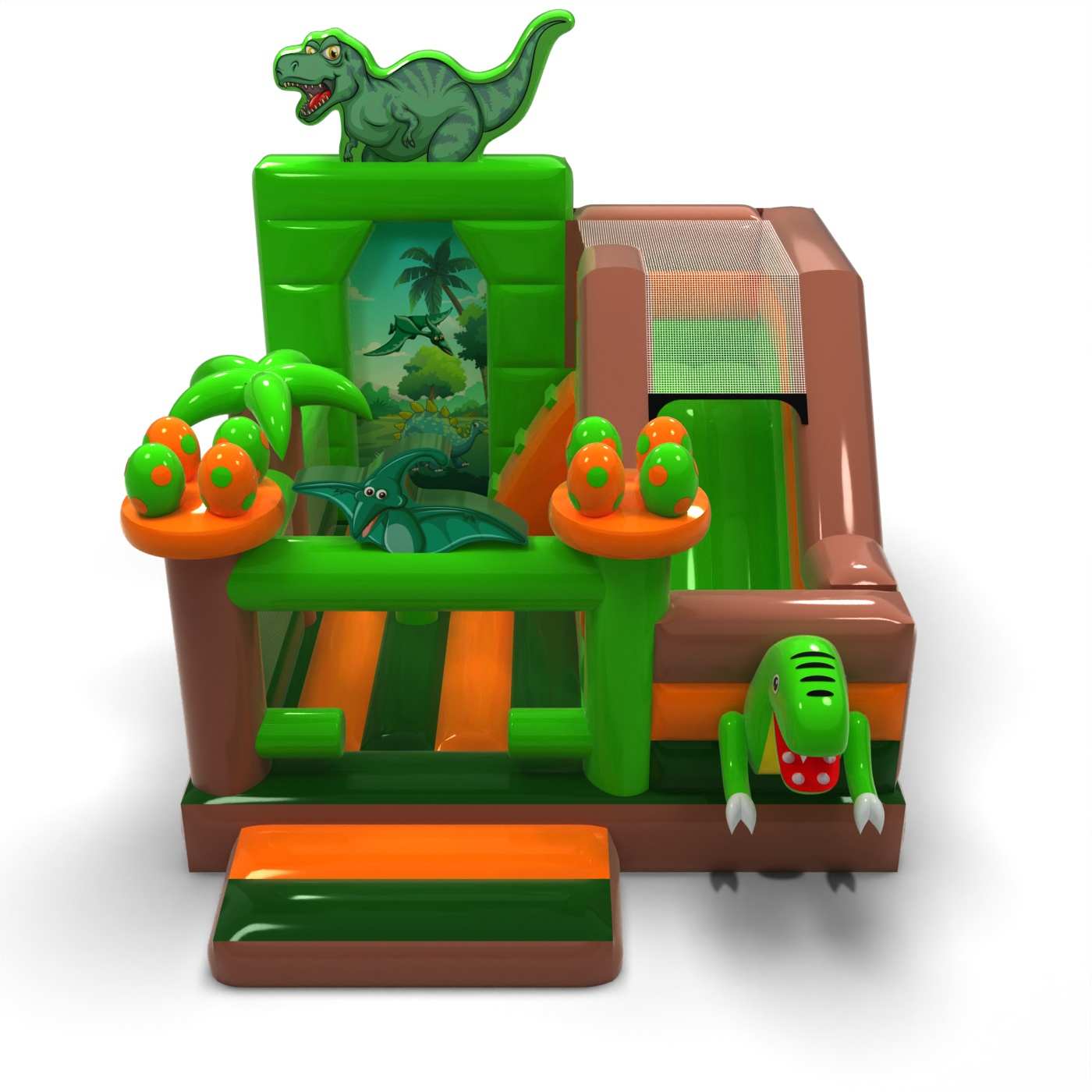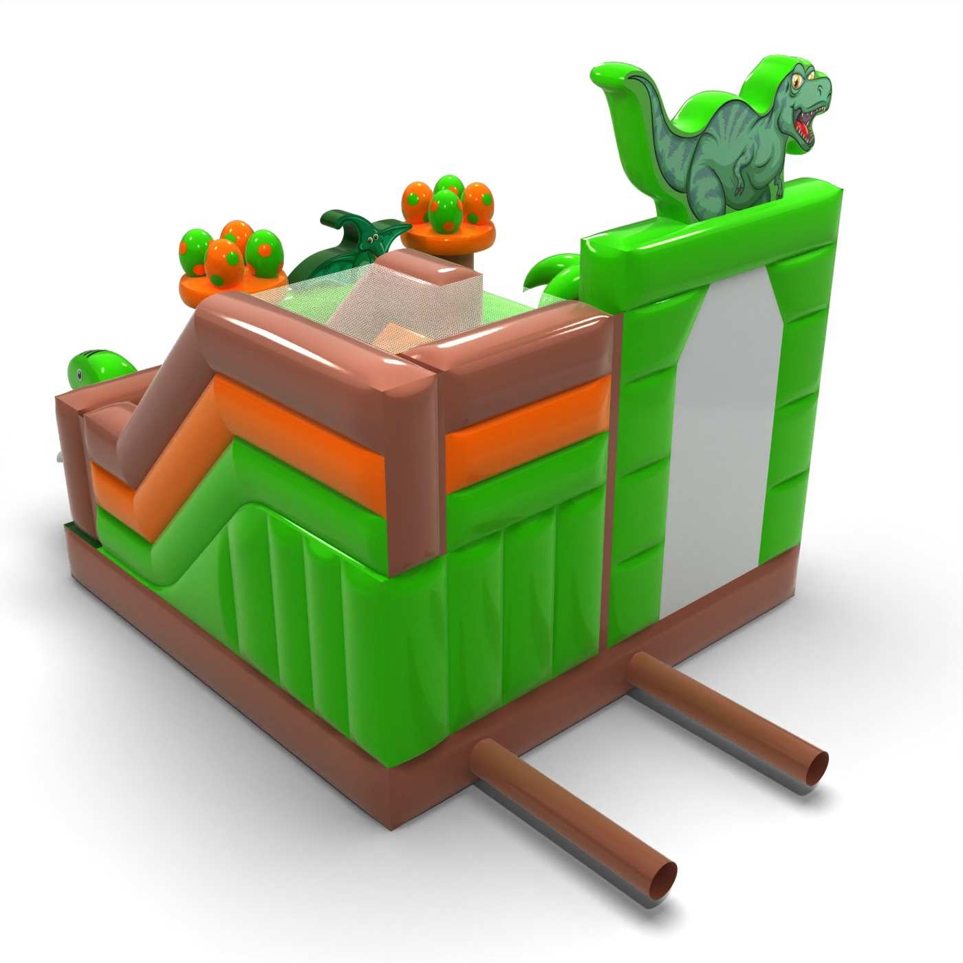 Gonfiabile con scivolo - dinosauro combo è un'attrazione per tutti gli amanti dei rimbalzi gioiosi. I bambini si divertono un mondo, saltando e interpretando ruoli adatti al tema dell'attrazione. Il Gonfiabile con scivolo - dinosauro combo è un'attrazione pensata non solo per i bambini più piccoli. I castelli gonfiabili di questa categoria sono solitamente decorati in modo sontuoso e contengono molti elementi che favoriscono il divertimento all'aria aperta. I castelli gonfiabili possono creare un fantastico mondo di esperienze mentre si salta gioiosamente con amici e coetanei. Il castello gonfiabile può essere combinato con altri prodotti della nostra gamma per creare un bellissimo e favoloso mondo di esperienze durante ore di allegri salti.