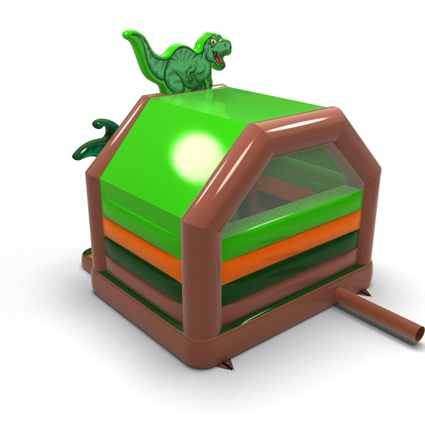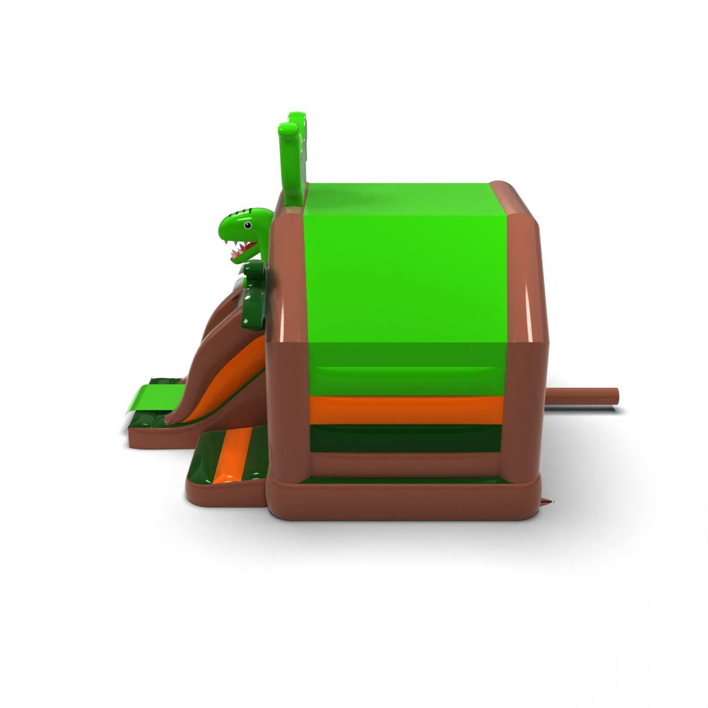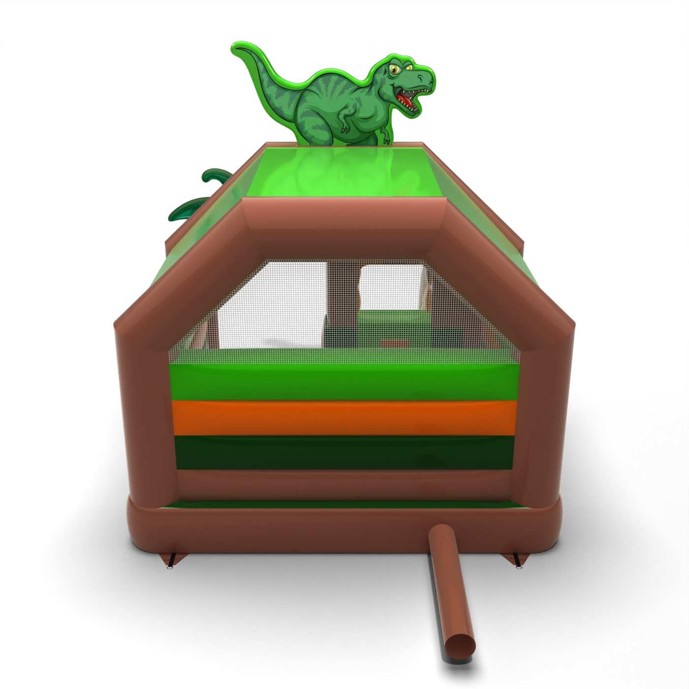 La forma elaborata e l'atmosfera giurassica creano un'area di gioco coesa e tematica ispirata al mondo dei dinosauri. La combinazione di salti e scivolamenti permette ai bambini di esplorare attivamente l'attrazione e li tiene impegnati per un periodo di tempo più lungo. L'elaborata grafica esalta l'atmosfera dell'avventura e supporta perfettamente le animazioni a tema. È destinato agli organizzatori che desiderano far risaltare la propria area per bambini con un'attrazione più elaborata. Il modello è adatto a festival, giornate cittadine e grandi eventi per famiglie.
