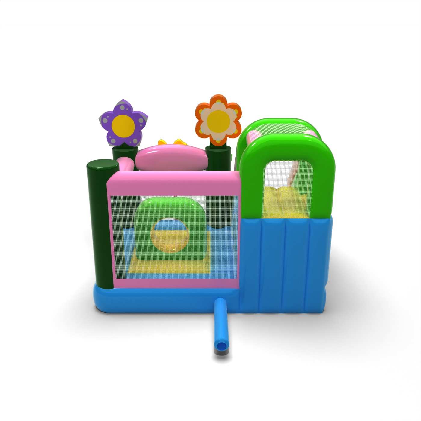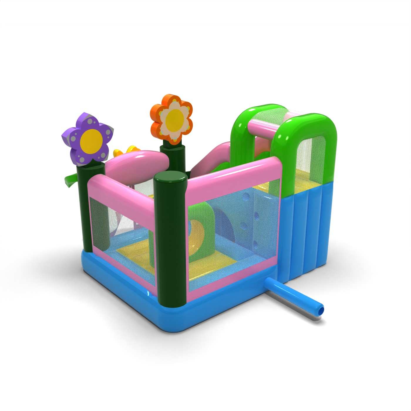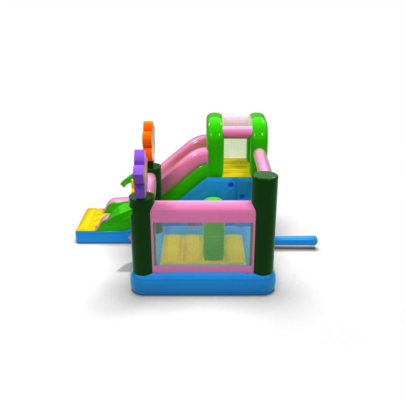 L'atmosfera primaverile e il design pastello conferiscono a questa attrazione un carattere leggero e gioioso, ideale per i più piccoli. La combinazione di rimbalzi e scivoli aggiunge varietà al divertimento e permette ai bambini di essere attivi senza essere monotoni. I motivi grafici naturali conferiscono un'atmosfera fresca e si adattano bene agli eventi all'aperto. Si tratta di un'opzione pratica per le società di noleggio che cercano un gonfiabile versatile per la stagione primavera/estate. Il modello si affermerà in occasione di festival, picnic e animazioni familiari, dove la leggerezza delle forme e un'atmosfera amichevole e divertente sono importanti.