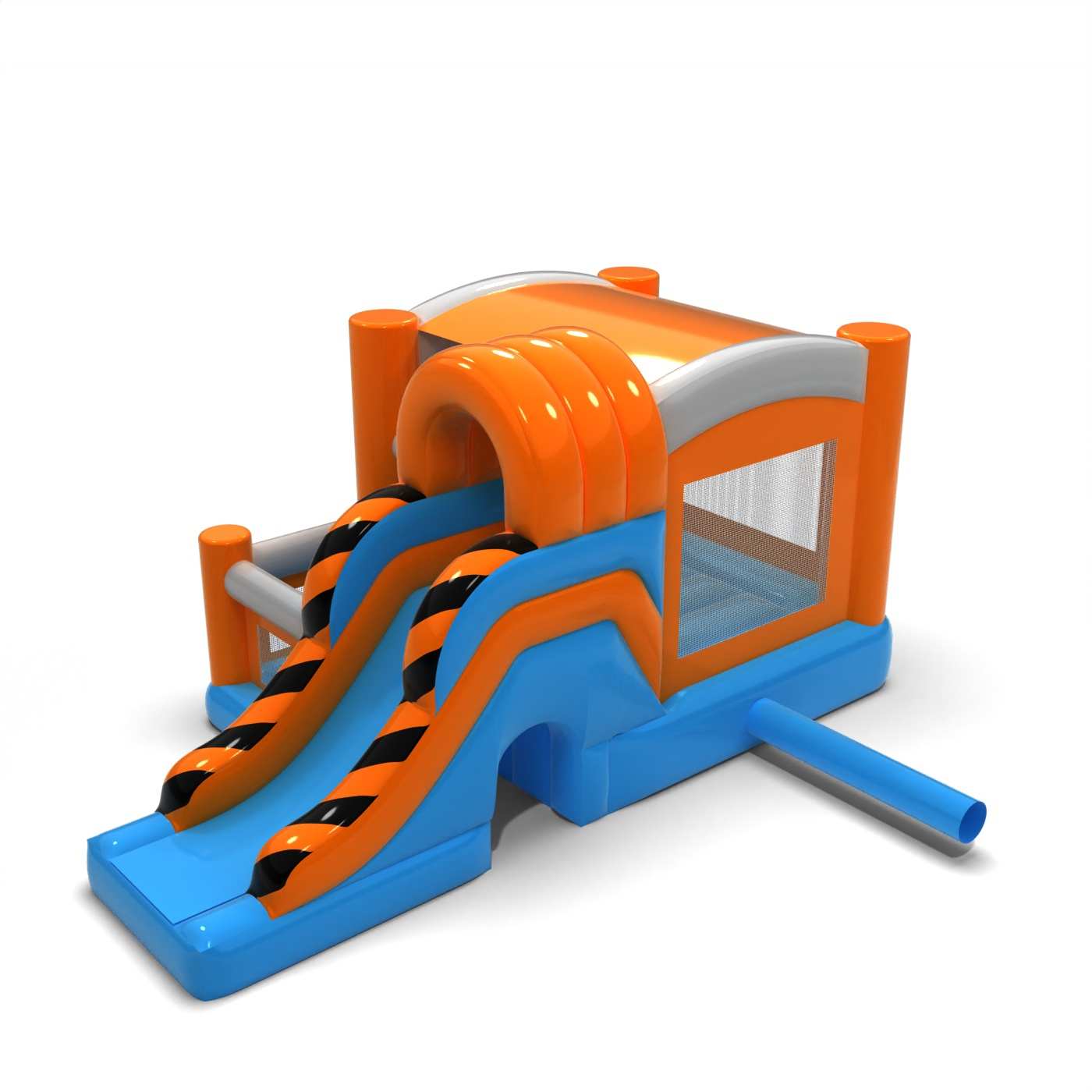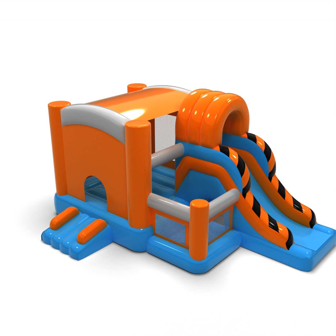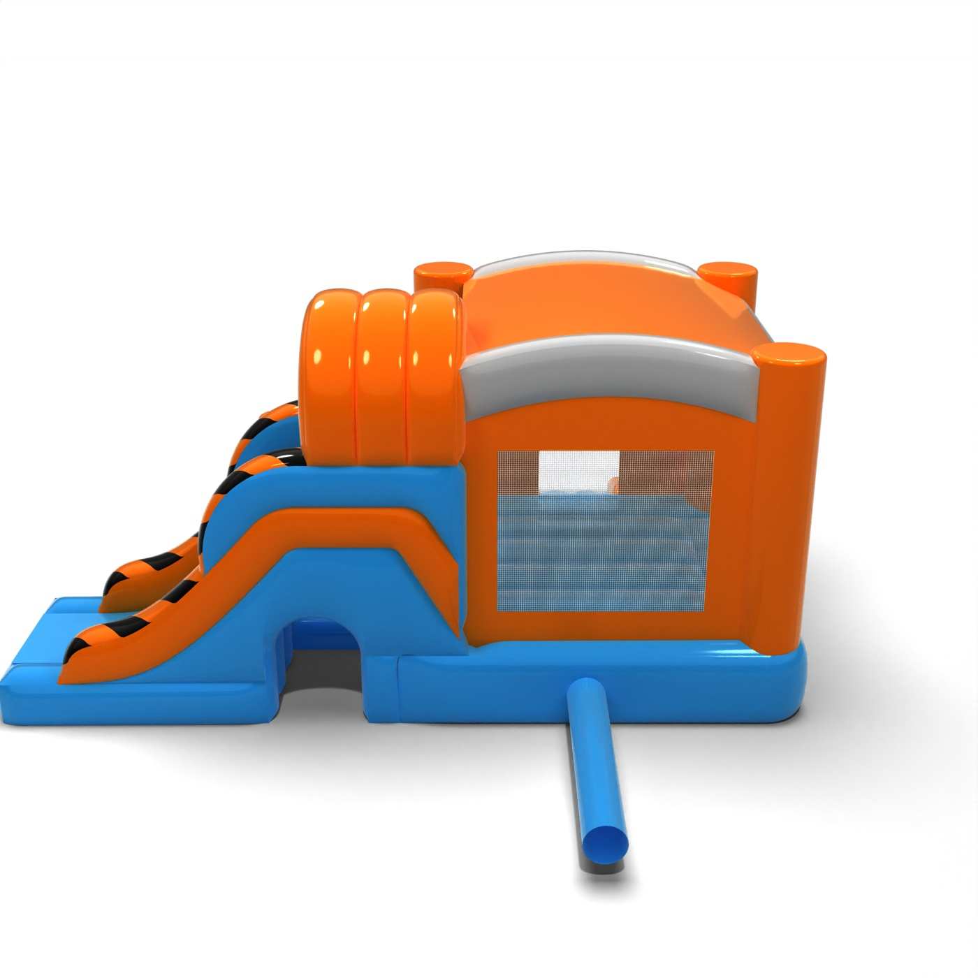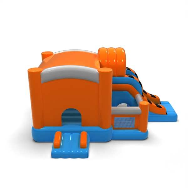 Il corpo più grande e il design sobrio conferiscono a questa attrazione un'atmosfera professionale e senza tempo. La zona di salto e scivolo integrata consente ai bambini di utilizzare attivamente il gonfiabile senza annoiarsi rapidamente. Il design chiaro rende l'attrazione intuitiva da usare e ben visibile nello spazio dell'evento. È una proposta solida per gli organizzatori di eventi di varia portata e natura. Il gonfiabile funziona bene sia in eventi all'aperto che in centri commerciali o sale per eventi.