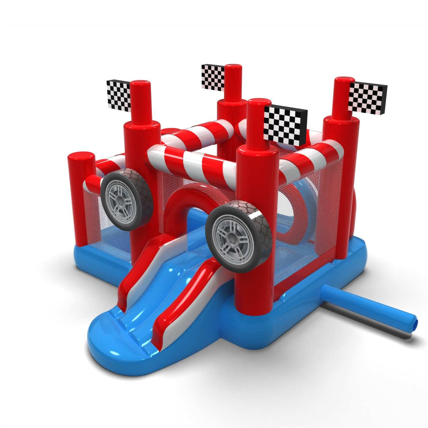 Il design sportivo ispirato al mondo delle corse crea uno spazio di gioco dinamico ma amichevole per i bambini più piccoli. La combinazione di una zona gonfiabile e di una piscina asciutta permette ai bambini di essere attivi e di esplorare l'attrazione in tutta sicurezza. I dettagli visivi motorizzati creano associazioni con una pista da corsa e introducono un elemento di eccitazione fin dal primo sguardo. Il formato compatto rende il gonfiabile facile da inserire in una varietà di spazi per eventi. L'attrazione è ideale per picnic familiari, festival e animazioni a tema per i più piccoli.