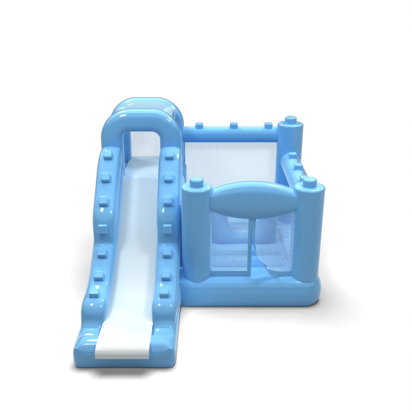 Piccolo castello gonfiabile con scivolo per bambini - blu pastello è un'attrazione per tutti gli amanti dei rimbalzi gioiosi. I bambini si divertono un mondo, saltando e interpretando ruoli adatti al tema dell'attrazione. Il Piccolo castello gonfiabile con scivolo per bambini - blu pastello è un'attrazione pensata non solo per i bambini più piccoli. I castelli gonfiabili di questa categoria sono solitamente decorati in modo sontuoso e contengono molti elementi che favoriscono il divertimento all'aria aperta. I castelli gonfiabili possono creare un fantastico mondo di esperienze mentre si salta gioiosamente con amici e coetanei. Il castello gonfiabile può essere combinato con altri prodotti della nostra gamma per creare un bellissimo e favoloso mondo di esperienze durante ore di allegri salti.
