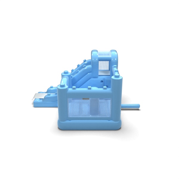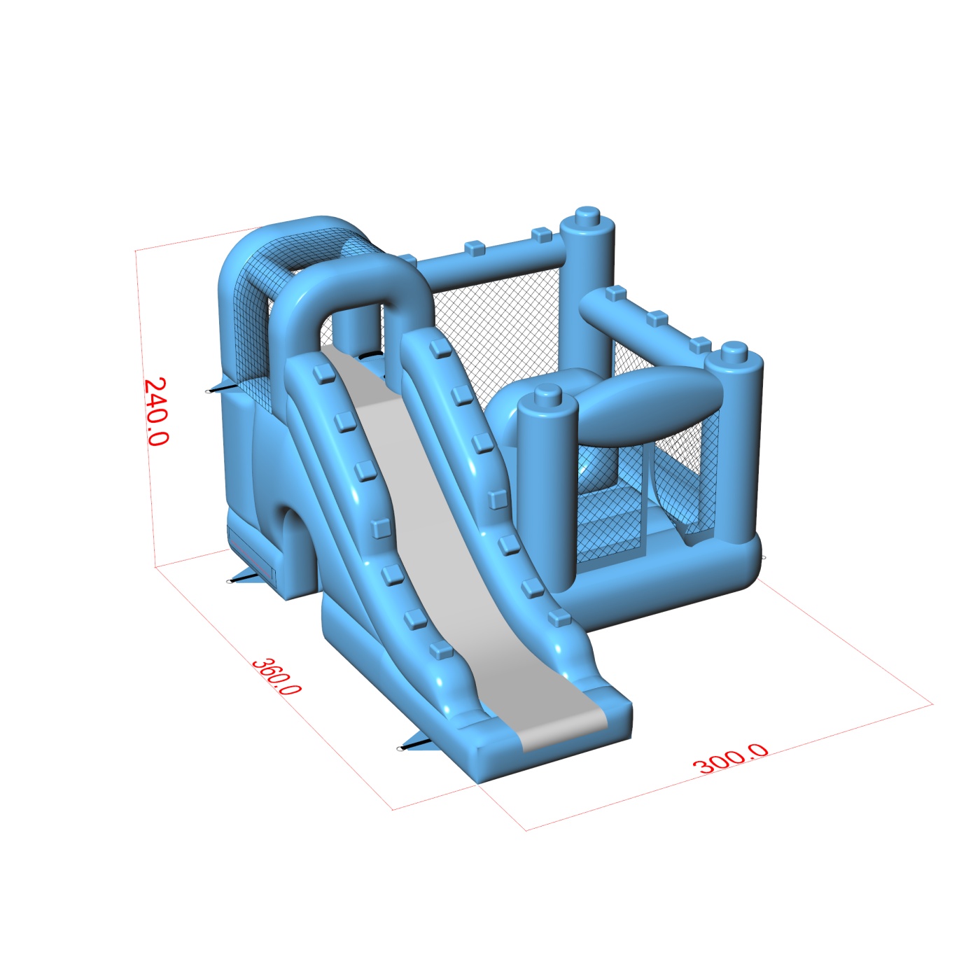 Il blu pastello conferisce a questa attrazione un aspetto fresco e neutro, facile da abbinare a diversi concetti visivi per un evento. Il design a corpo unico che combina salto e scivolamento consente ai bambini di utilizzare attivamente il gonfiabile senza dover dividere lo spazio in diverse zone. La disposizione ben studiata delle entrate e delle uscite favorisce una rotazione fluida dei partecipanti durante l'evento. Si tratta di un'opzione pratica per le società di eventi e di noleggio che si occupano sia di feste private che di piccole produzioni B2B. L'attrazione si presta bene per picnic aziendali, giornate per bambini ed eventi organizzati in spazi semi-aperti e sotto una tettoia.
