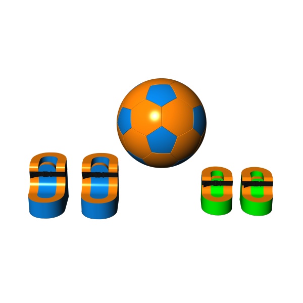 Il set di calcio giga per bambini è un'attrazione di movimento animato che combina il divertimento con un elemento di competizione sportiva. Il set comprende quattro paia di mega-scarpe in gommapiuma nei colori arancione e verde e un grande pallone gonfiabile adatto ai giochi di squadra. Le proporzioni modificate dei passi rendono il gioco più eccitante e generano molte risate tra i partecipanti. È una soluzione pratica per animatori, scuole e società di noleggio che organizzano giornate per bambini, festival e picnic in famiglia. Il set funziona meglio in uno spazio aperto, dove è sicuro organizzare un torneo e coinvolgere un gruppo più numeroso di bambini.