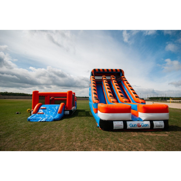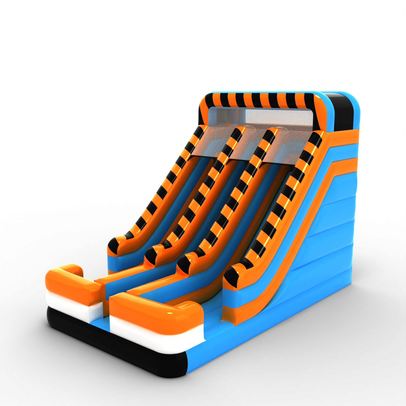 Scivolo doppio gonfiabile Gangar è un fantastico gonfiabile per bambini e ragazzi. Funzionerà benissimo in combinazione con le nostre altre attrazioni a tema diverso. Il Scivolo doppio gonfiabile Gangar suscita l'interesse dei bambini non appena lo si vede. I più giovani amano il divertimento, quindi questo scivolo potrebbe essere uno dei gonfiabili più popolari della vostra gamma. I gonfiabili di questa categoria sono accattivanti e di solito presentano molte decorazioni ed elementi che incoraggiano il divertimento all'aria aperta.
