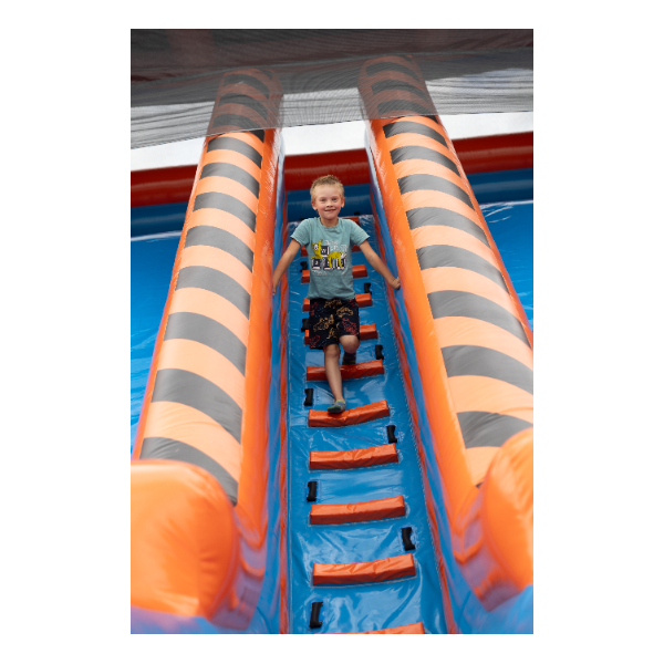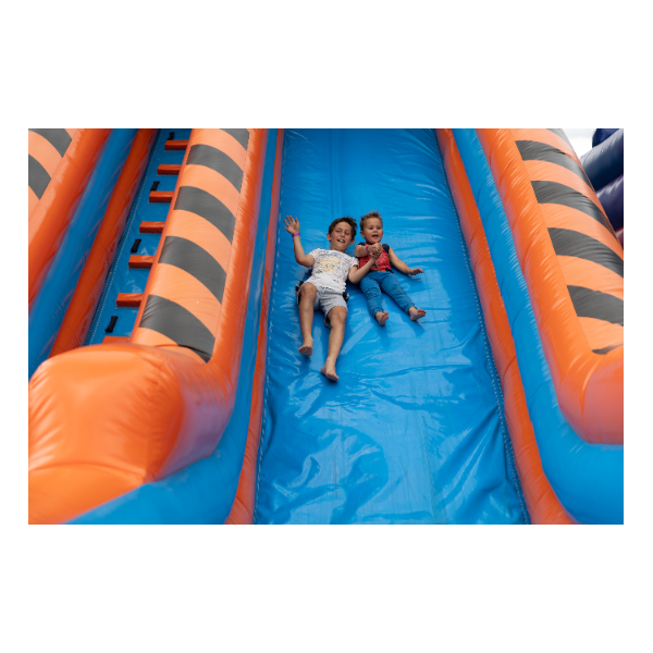 Questo scivolo doppio Gangar garantisce il divertimento dei bambini in qualsiasi evento all'aperto! Con la sua struttura robusta e i suoi colori vivaci, attira l'attenzione garantendo la sicurezza. Ideale per grandi eventi come picnic, festival o feste di compleanno.