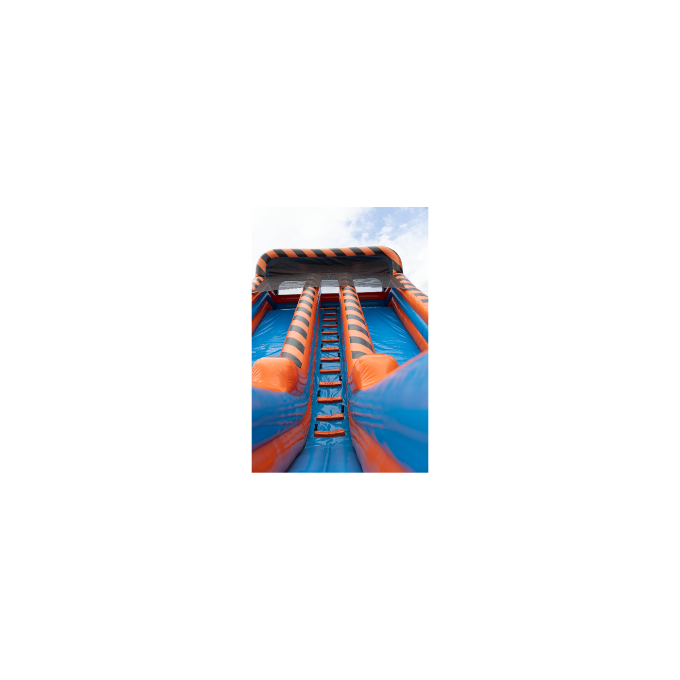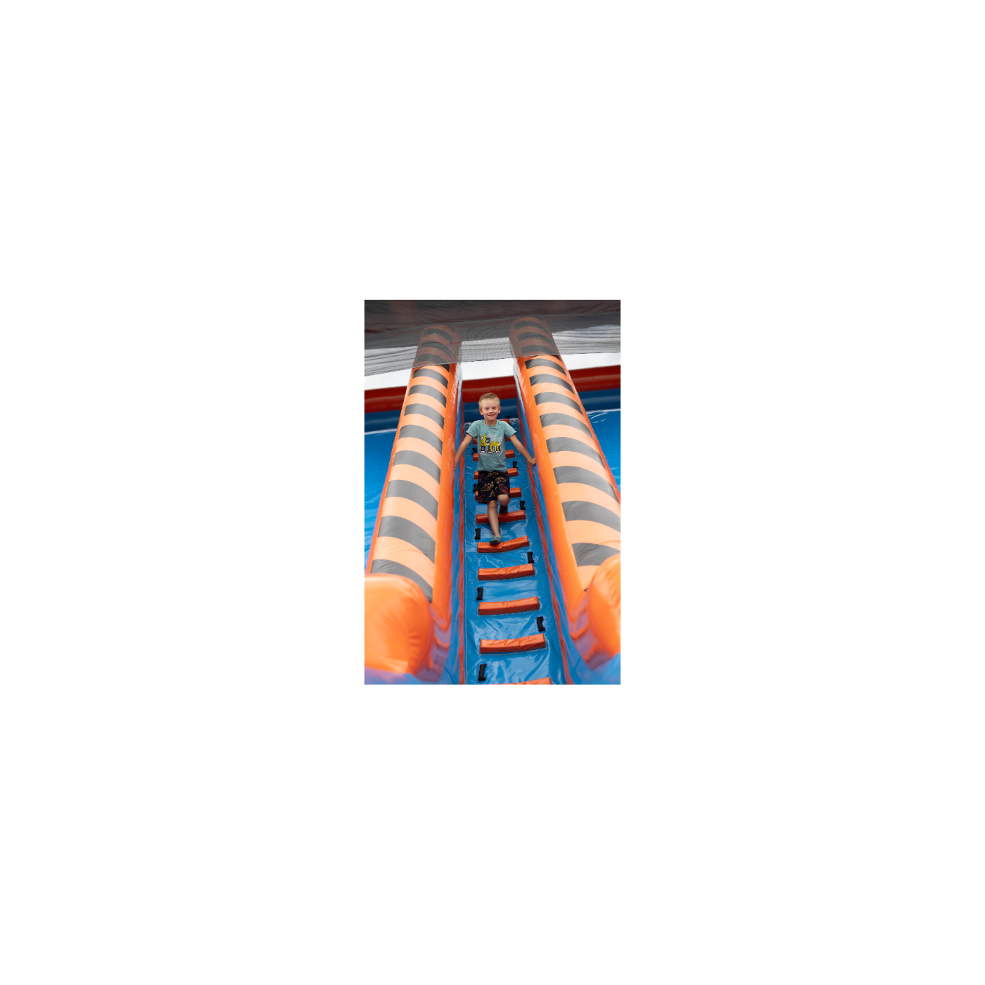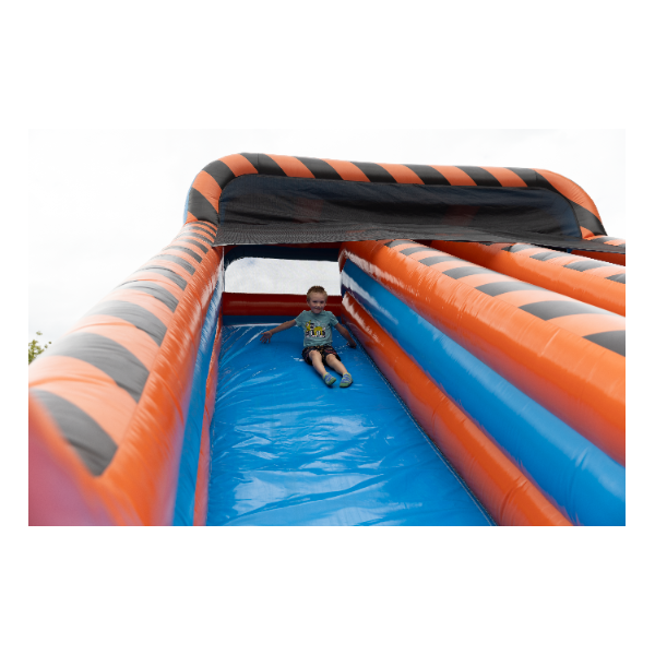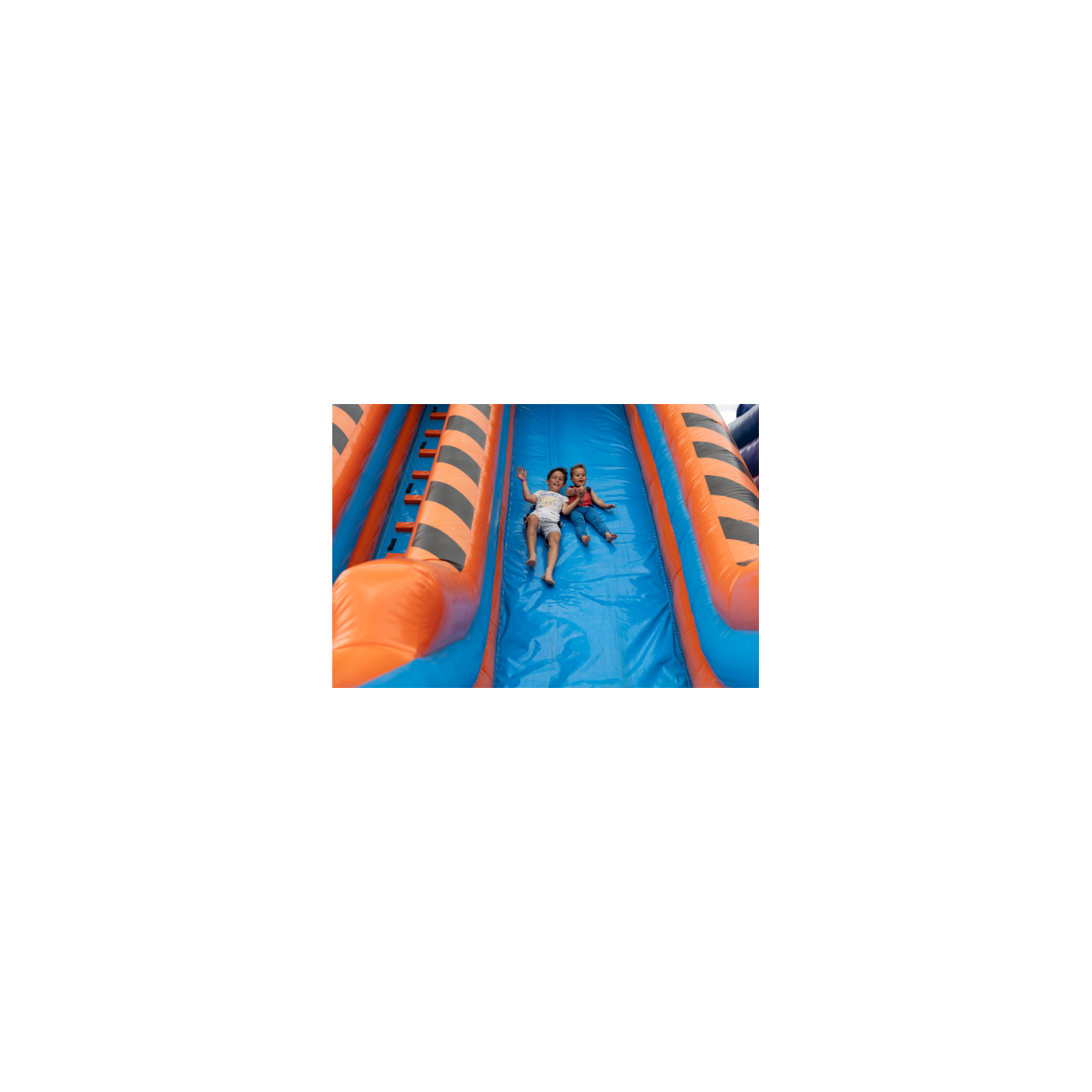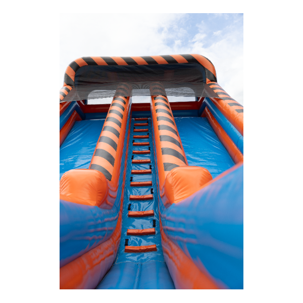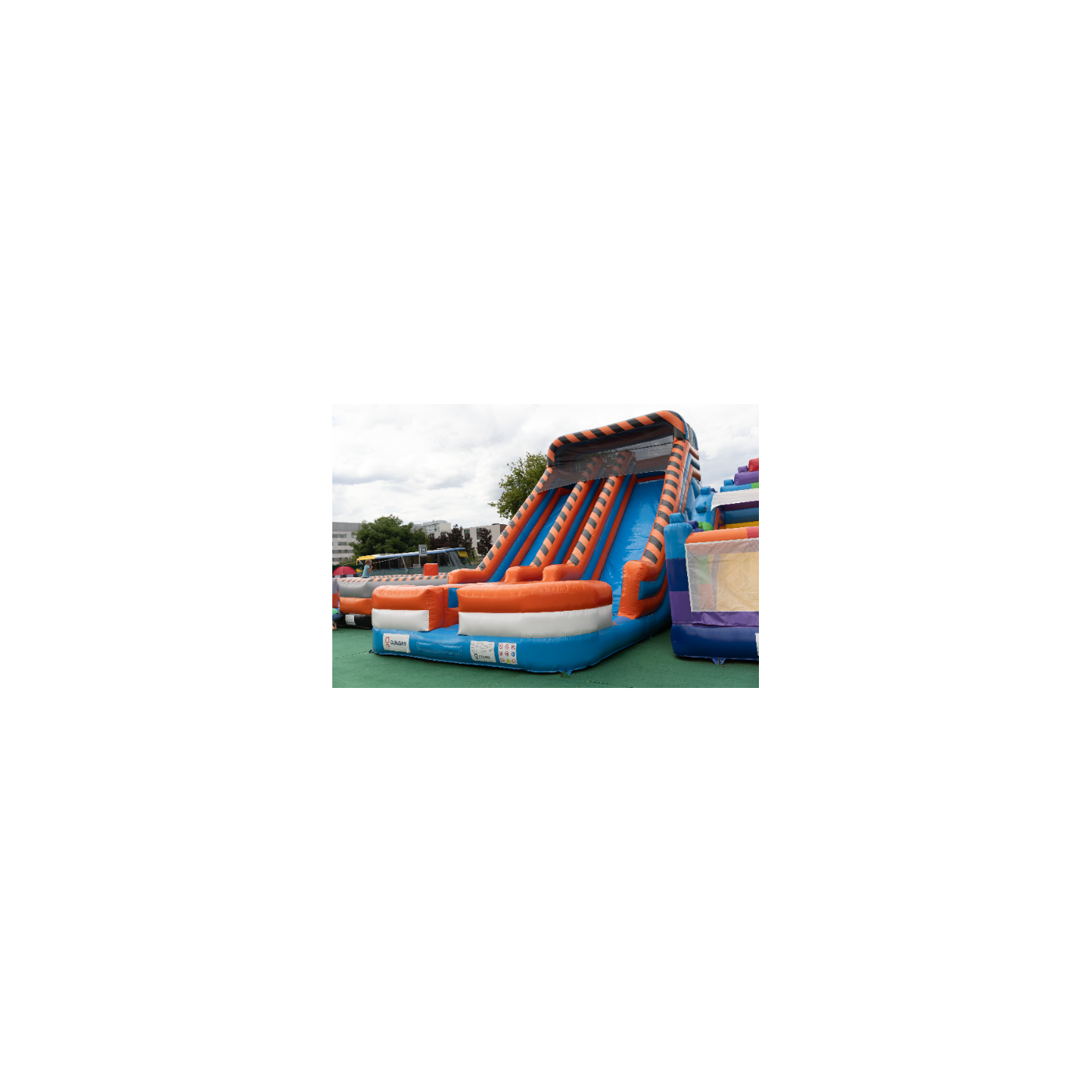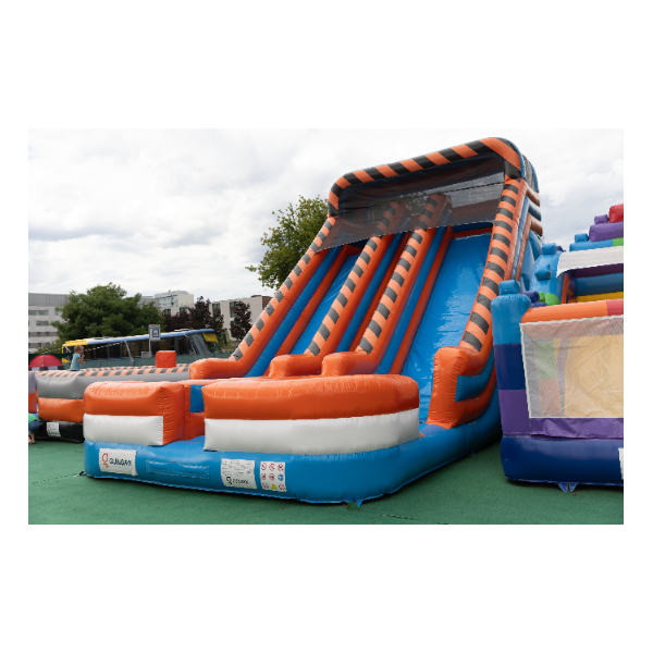 Come tutte le nostre attrazioni gonfiabili, il prodotto è realizzato con materiali di alta qualità, in questo caso PVC di nuova generazione con elevata resistenza allo strappo. Questo Scivolo doppio gonfiabile Gangar ha 7 m x 4 m x 5 m (lunghezza, larghezza e altezza). Soddisfa lo standard di sicurezza EN 14960 per le attrezzature da gioco gonfiabili. Consigliamo l'uso di gommoni per il gonfiabile, che aggiungiamo nel set. Come la maggior parte delle nostre attrazioni, il gonfiabile ha una garanzia di due anni. Noi di Gangaru ci assicuriamo che il vostro lavoro sia il meno gravoso possibile: forniamo un set completo di accessori necessari per fissare l'attrazione (corde, picchetti) nella confezione con il gonfiabile. Il gonfiabile è stato controllato da un perito indipendente per verificarne la sicurezza.