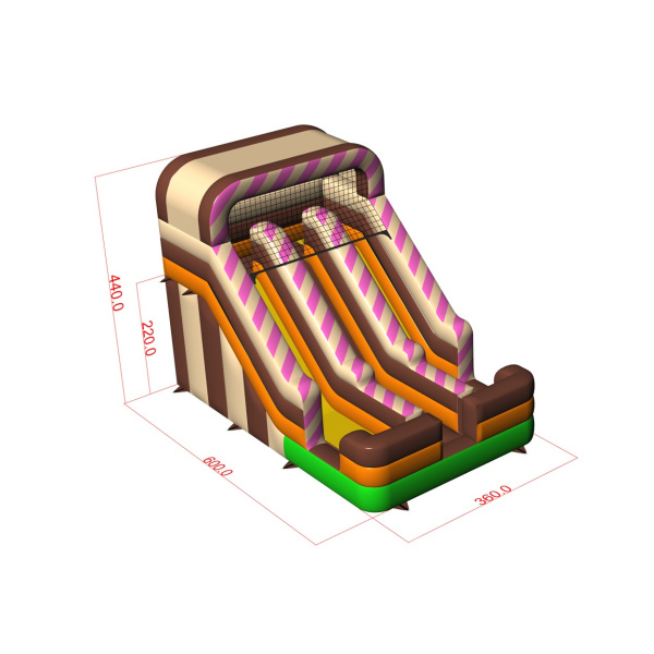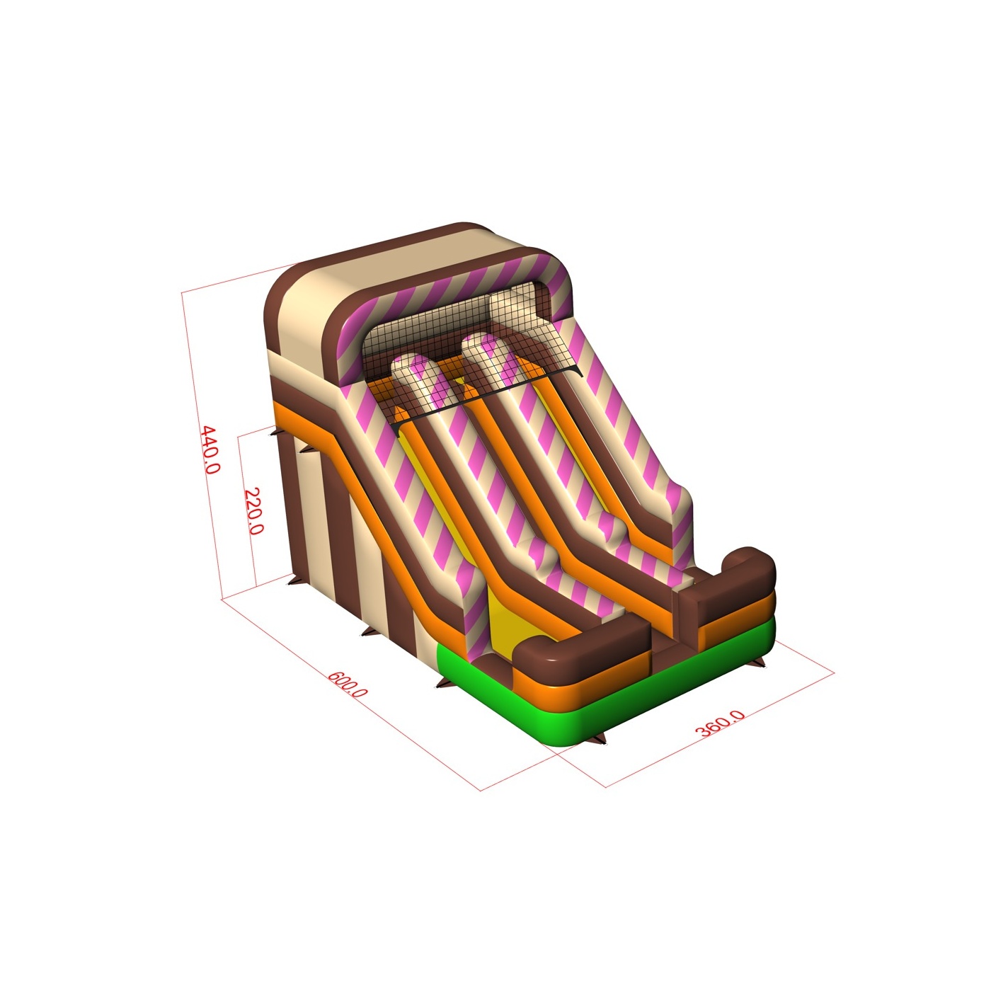 Lo scivolo gonfiabile doppio a tema caramelle è un divertimento per tutta la famiglia e non solo! Progettato per emozionare e realizzare i sogni dei più piccoli partecipanti all'attrazione gonfiabile.