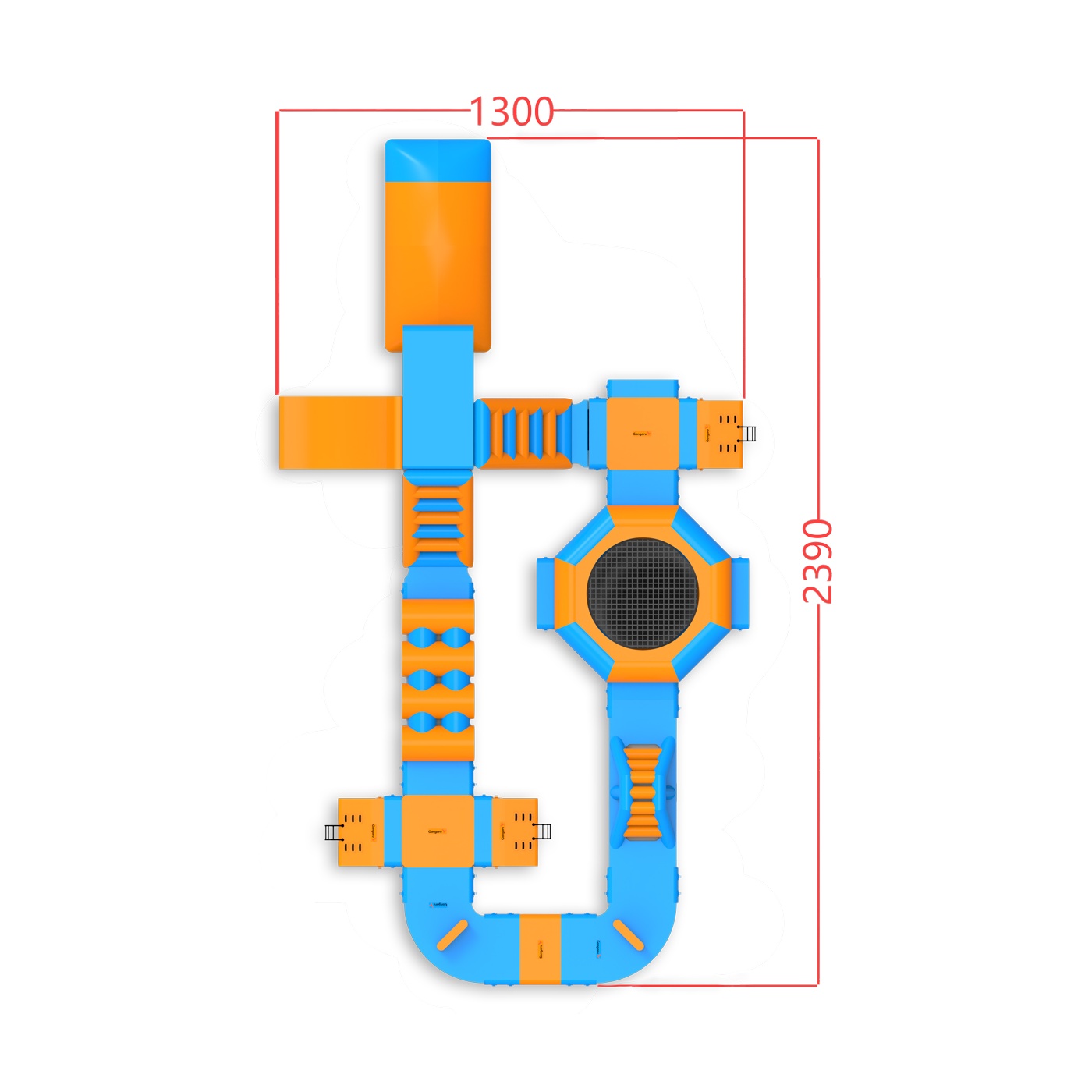 Come tutte le nostre attrazioni gonfiabili, il prodotto è realizzato con materiali di alta qualità, in questo caso PVC di nuova generazione con elevata resistenza allo strappo. È conforme allo standard di sicurezza ISO 25649-6 e, come la maggior parte delle nostre attrazioni, il gonfiabile viene fornito con una garanzia di due anni. Noi di Gangaru ci assicuriamo che i vostri pensieri siano il più possibile ridotti: nella confezione del gonfiabile forniamo un set completo di accessori necessari per collegare le attrazioni tra loro (corde). Il gonfiabile è stato controllato da un perito indipendente per verificarne la sicurezza.