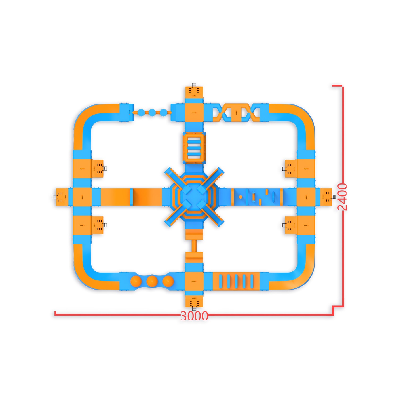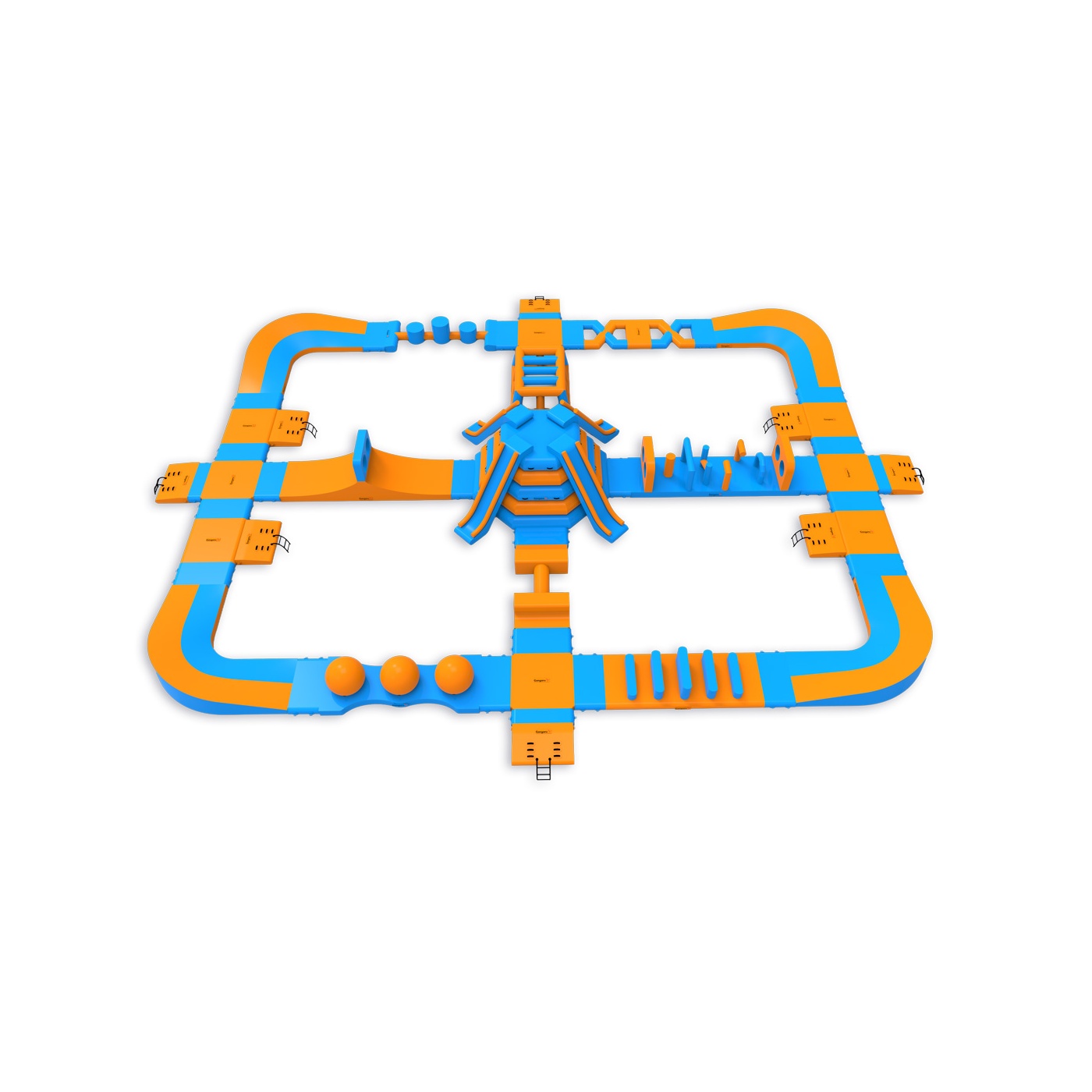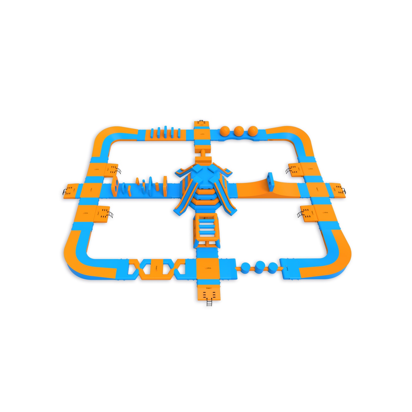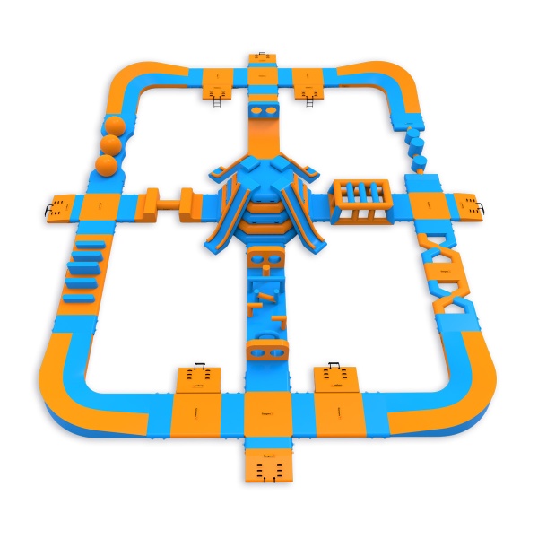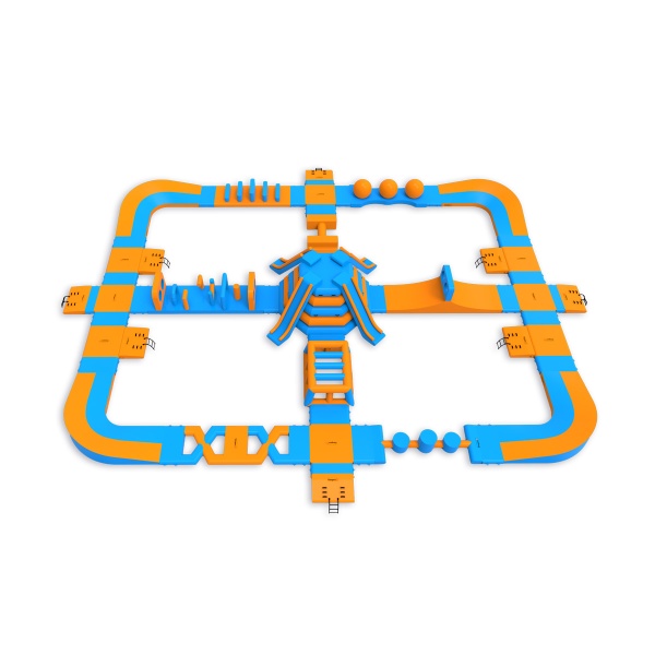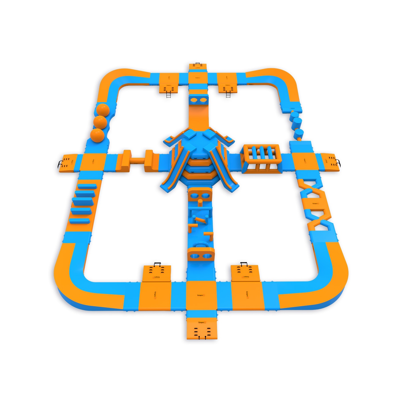 Quattro scivoli al centro del parco sono sufficienti per tenere viva l'attenzione dei partecipanti per molto tempo. Una torre centrale domina il layout, mentre un percorso perimetrale con palline Wipeout, ostacoli e altre attrazioni garantisce attività per ogni partecipante, indipendentemente dall'età o dal livello di forma fisica. Progettato per ospitare 76 persone alla volta, funziona bene su specchi d'acqua di medie dimensioni dove è importante avere a disposizione attrazioni per un'ampia fascia di ospiti.