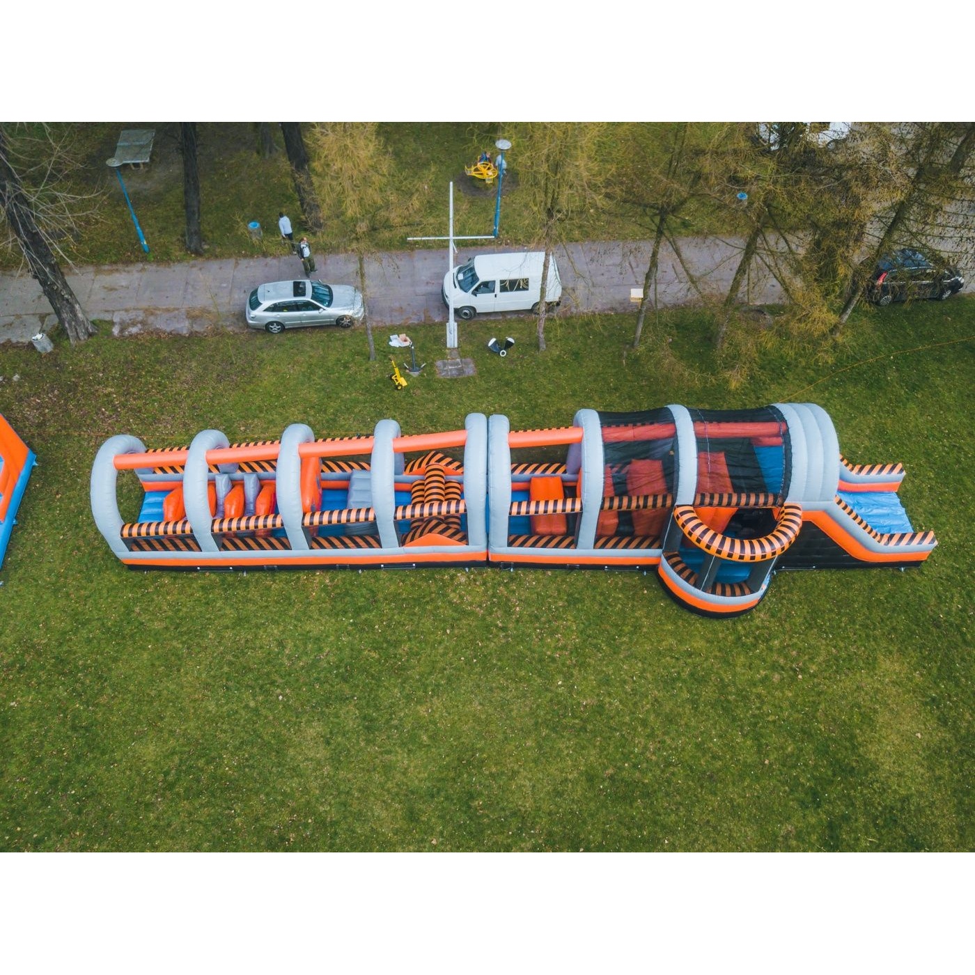 Percorso gonfiabile ad ostacoli "CrashRunner" - 24 m è dedicato a tutti coloro che amano il divertimento unito alla competizione. Il percorso ad ostacoli gonfiabile è stato progettato principalmente per giovani e adulti, ma è adatto anche ai bambini a partire dai 6 anni. Quasi tutti troveranno elementi di divertimento in questa attrazione. Dedichiamo questo prodotto a tutti coloro che vogliono ritrovare il proprio spirito competitivo durante le ore di gioco all'aperto. Le attrazioni di questa serie possono includere molti elementi di varia difficoltà da superare. Arrampicarsi su una parete, scivolare velocemente e infine strisciare tra elementi sporgenti che rendono difficile completare il percorso nel minor tempo possibile.