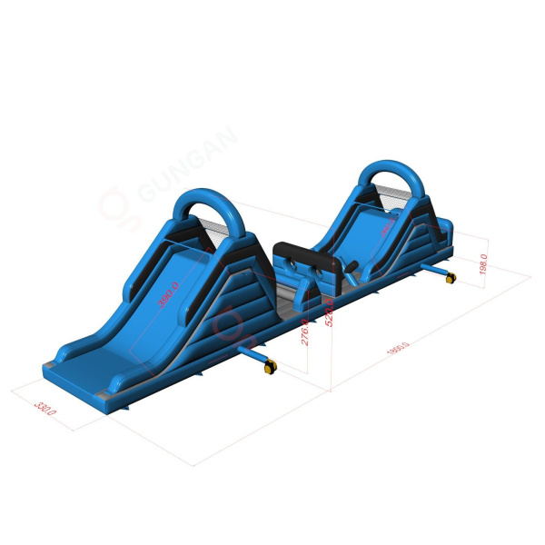 I percorsi a ostacoli gonfiabili possono essere collegati l'uno all'altro con il velcro, in modo da offrire a voi stessi e agli altri tante emozioni durante una lunga festa. Le attrazioni di questo tipo presenti nel nostro assortimento comprendono anche scivoli e ostacoli aggiuntivi, come pareti da arrampicata. Inoltre, i percorsi a ostacoli gonfiabili possono essere ampliati con traverse e paletti gonfiabili che "spuntano" dal soffitto e dal pavimento per rendere il passaggio più difficile e rallentare i giocatori. L'attrazione può fungere da piazza per una sana e interessante competizione. Questo tipo di gioco porta molto divertimento ed energia positiva.