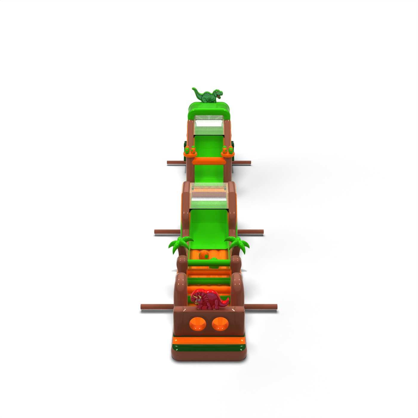 Percorso gonfiabile ad ostacoli per dinosauri - 20 m è dedicato a tutti coloro che amano il divertimento unito alla competizione. Il percorso ad ostacoli gonfiabile è stato progettato principalmente per giovani e adulti, ma è adatto anche ai bambini a partire dai 6 anni. Quasi tutti troveranno elementi di divertimento in questa attrazione. Dedichiamo questo prodotto a tutti coloro che vogliono ritrovare il proprio spirito competitivo durante le ore di gioco all'aperto. Le attrazioni di questa serie possono includere molti elementi di varia difficoltà da superare. Arrampicarsi su una parete, scivolare velocemente e infine strisciare tra elementi sporgenti che rendono difficile completare il percorso nel minor tempo possibile.