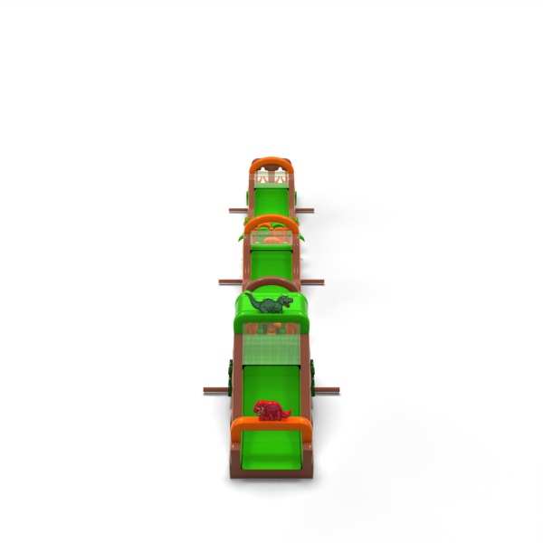La pista monumentale in un'atmosfera da dinosauro crea una spettacolare zona di divertimento che diventa il punto focale di ogni evento. Il percorso a ostacoli, molto lungo e vario, consente un'intensa competizione, un elevato ricambio di partecipanti e un lungo mantenimento dell'interesse per l'attrazione. Si tratta di una struttura professionale preparata per grandi eventi, dove contano la stabilità, la durata e il funzionamento senza problemi. Questo tipo di pista è un prodotto di forte investimento, spesso scelto da clienti che cercano attrazioni su larga scala con un alto potenziale di guadagno. Funziona al meglio per gli eventi di massa, i festival e le grandi produzioni all'aperto, dove sono importanti la scala, lo spettacolo e la capacità affidabile per tutto il giorno.