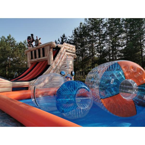 I rulli d'acqua e le palle d'acqua sono ideali in combinazione con le piscine d'acqua. Il rullo d'acqua è un'attrazione per le persone con grandi riflessi. Quando viene lasciato sulla superficie dell'acqua, il rullo d'acqua è molto mobile, il che significa che giocarci può essere fonte di risate non solo per il partecipante stesso, ma anche per gli osservatori. Cercate di mantenere l'equilibrio e di percorrere una certa distanza all'interno del rullo d'acqua. La palla d'acqua (o water ball) è pensata per bambini e ragazzi. Cercate di rimanere in piedi mentre siete racchiusi in una palla d'acqua gonfiabile. Attaccata a una corda, la palla d'acqua impedisce al partecipante di allontanarsi troppo in acqua libera. Le palle d'acqua possono essere utilizzate sia in uno specchio d'acqua, sia in laghi o in acque larghe e calme. Il valzer d'acqua e le palle d'acqua rappresentano innegabilmente la combinazione perfetta di divertimento e competizione in un ambiente acquatico. Per regalare un'esperienza indimenticabile a tutti i partecipanti alla festa, investite in palle d'acqua e valzer.