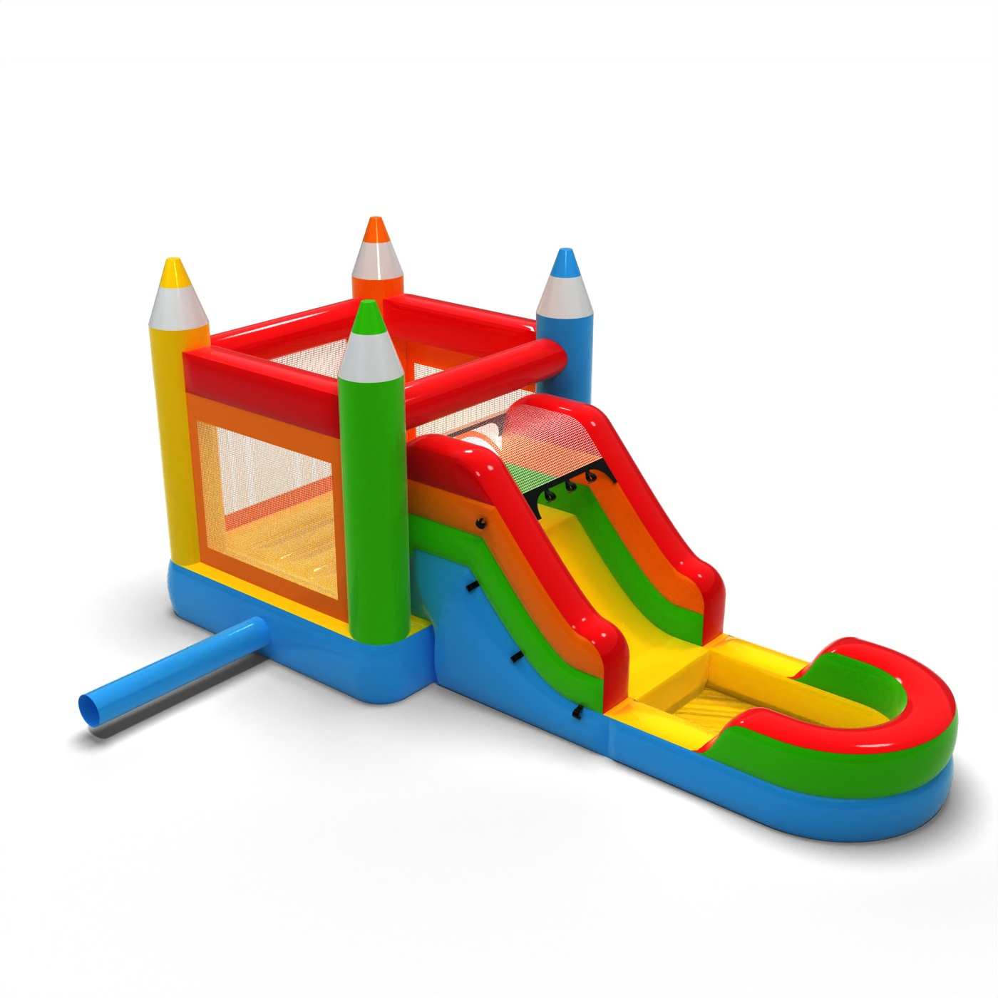 Scivolo d'acqua con castello gonfiabile di pastelli è un'eccellente attrazione per bambini, ragazzi e adulti. I gonfiabili ad acqua sono disponibili in molti temi e colori. Gli scivoli gonfiabili sono un'attrazione sensazionale per tutti i frequentatori delle feste durante le lunghe giornate estive. Gli scivoli gonfiabili sono un successo assoluto in tutti i parchi acquatici. Approfittatene e divertitevi con i vostri amici e coetanei sulle attrazioni acquatiche. Uno scivolo gonfiabile renderà più vivace il tempo trascorso con la famiglia e gli amici in uno specchio d'acqua o su una spiaggia di sabbia dorata.